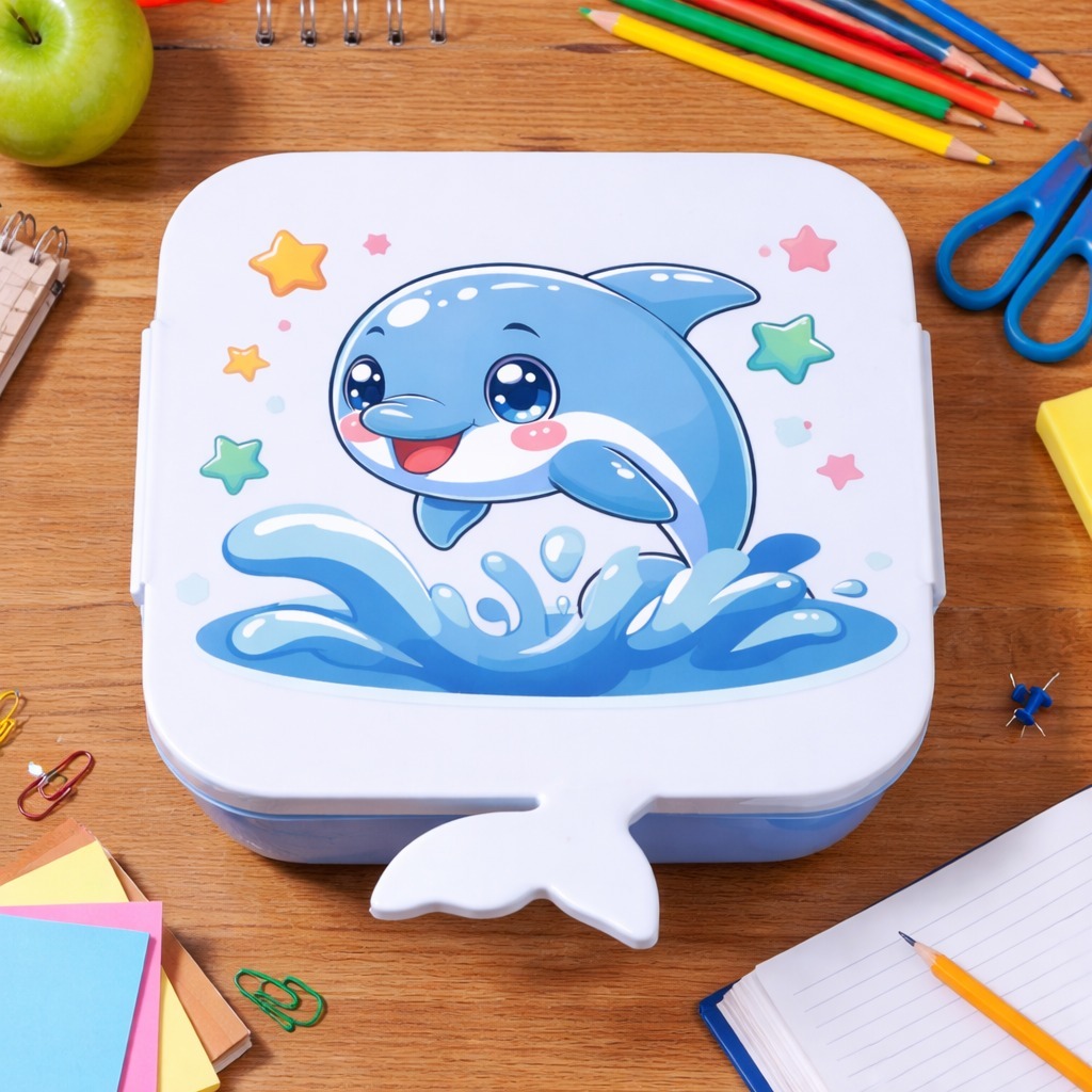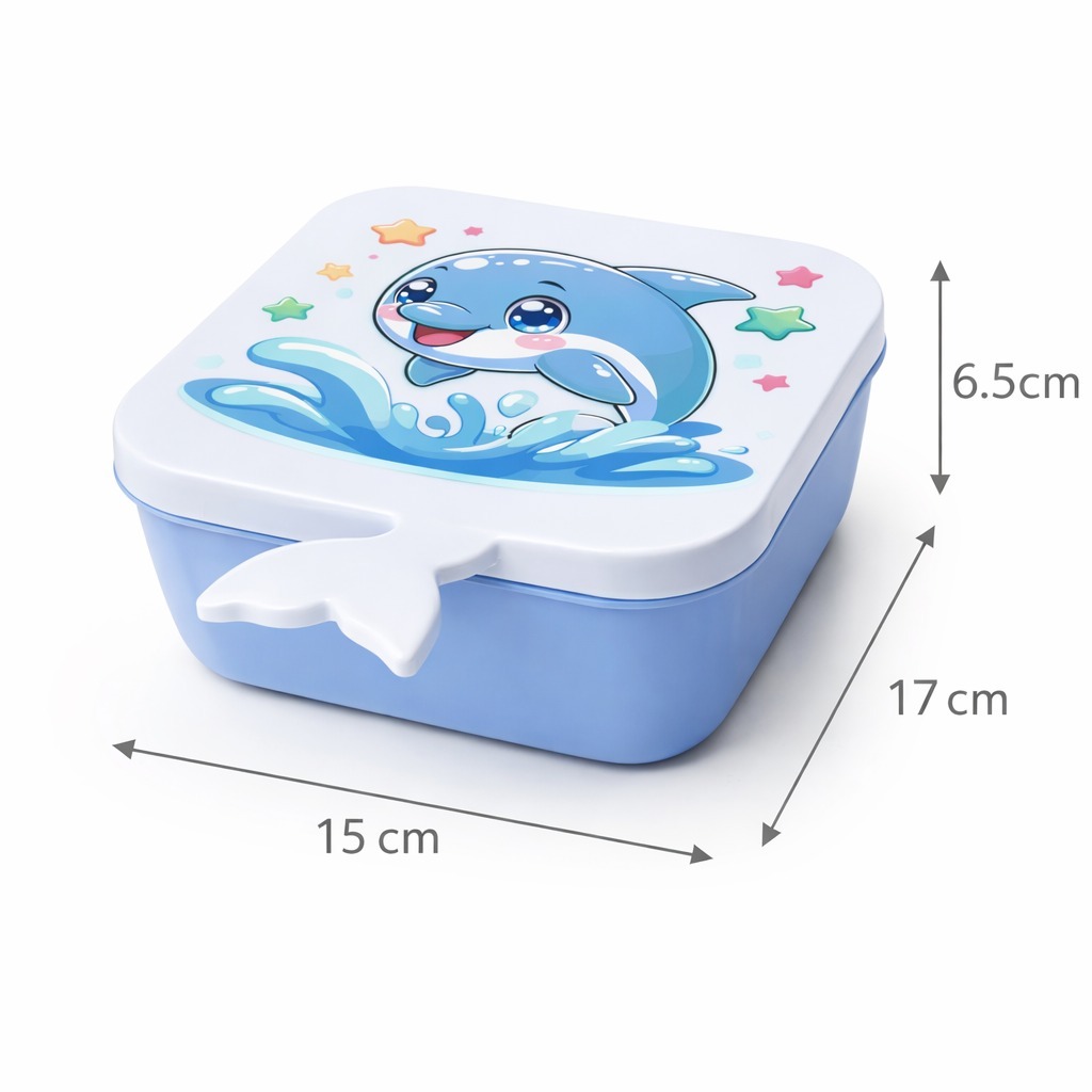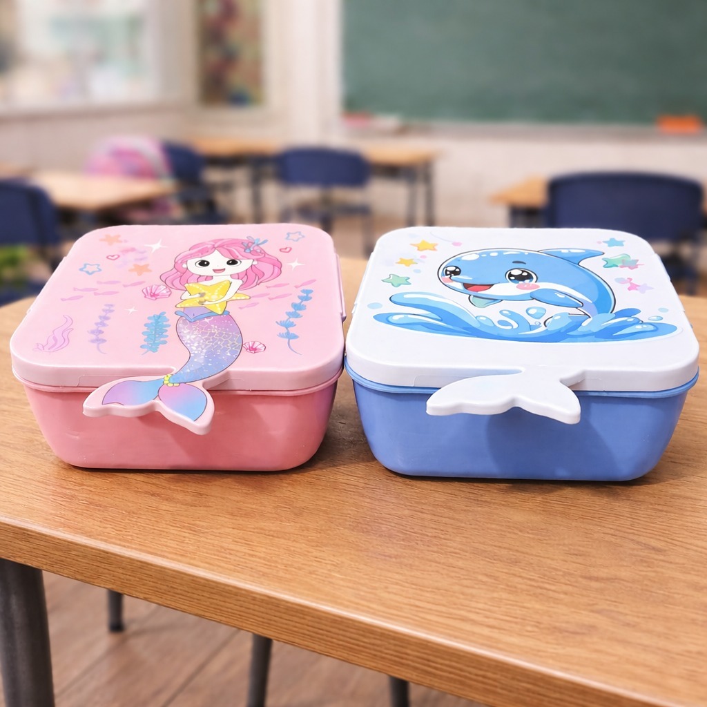 Marmita Infantil Escolar com Divisória e Colher Lancheira Kids Sereia Golfinho BPA Free Rosa Azul