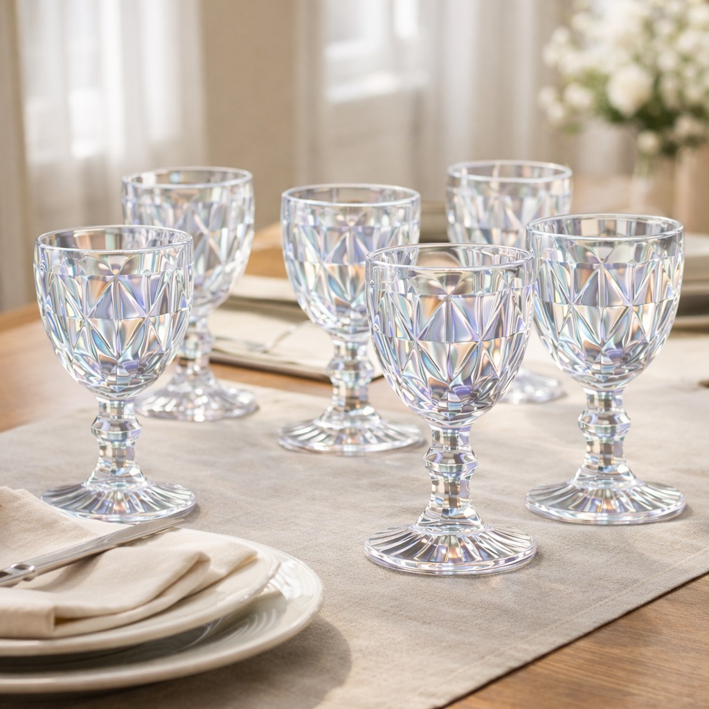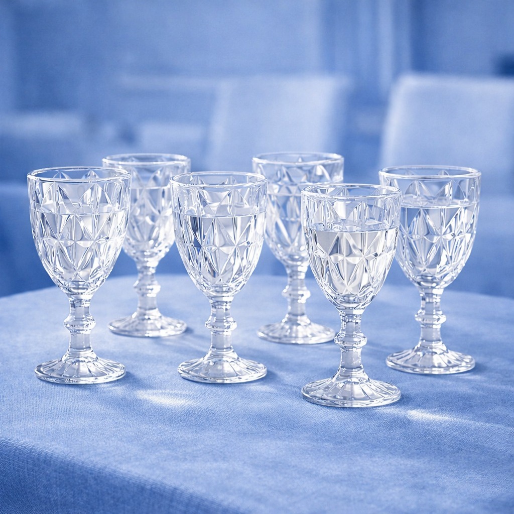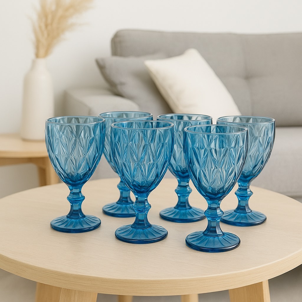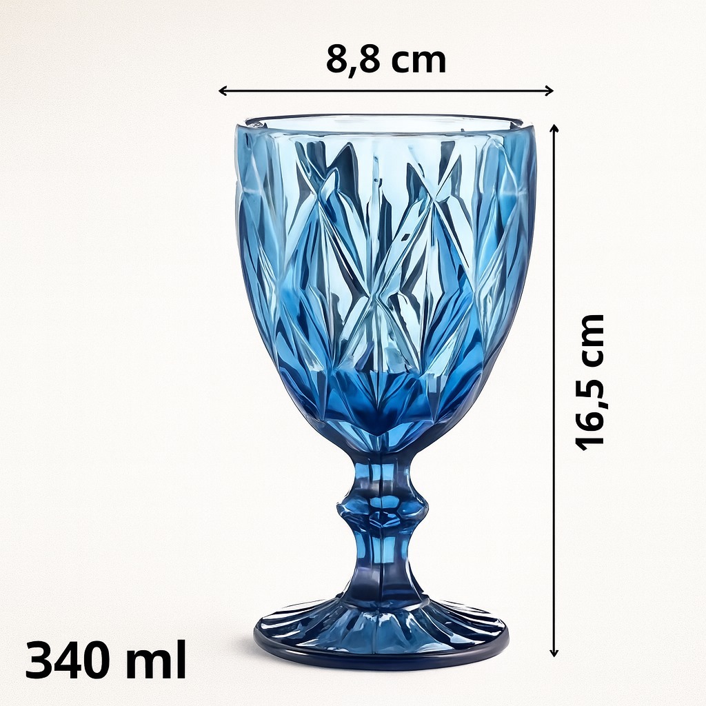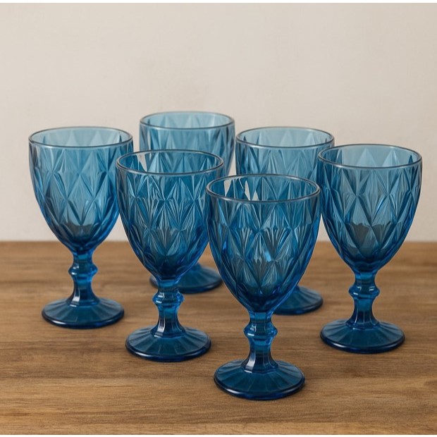 Jogo 6 Taças de Vidro Diamond Água Suco Vinho 340ml Azul Premium Mesa Posta Sofisticada