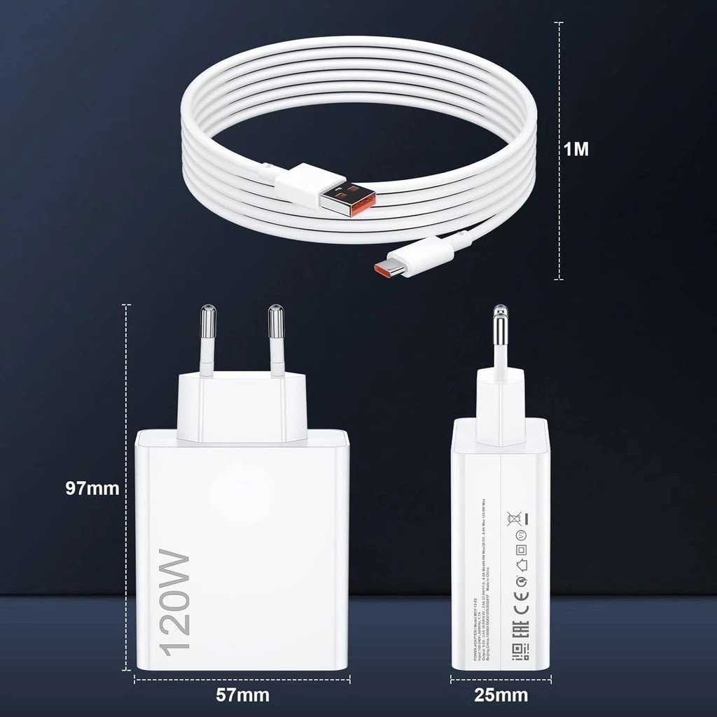Carregador Rápida Turbo 120W With 6A USB C Cable 1M For Mi Turbo Charge Turbo Power Cable USB + Type C