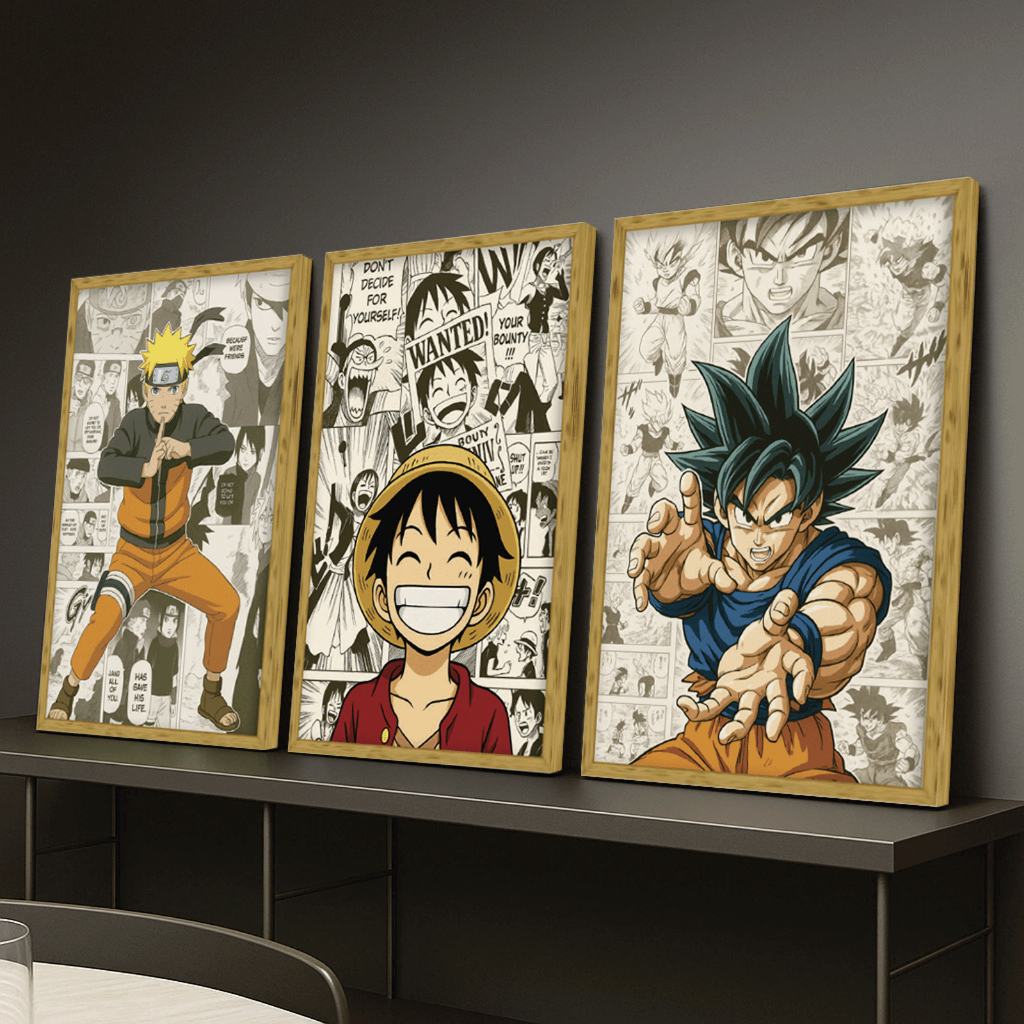 Kit 3 Peças Quadros Decorativos Animes – Naruto, One Piece e Dragon Ball