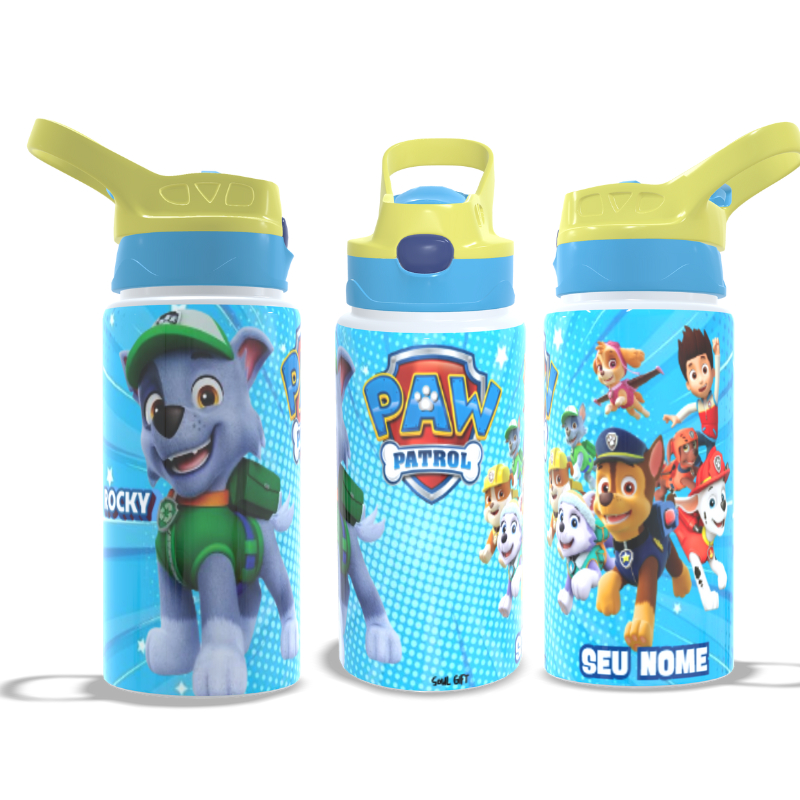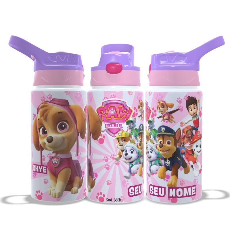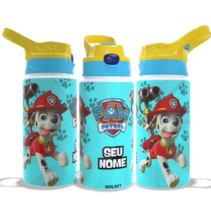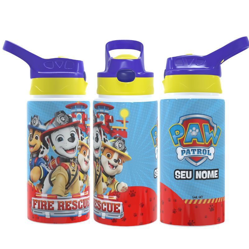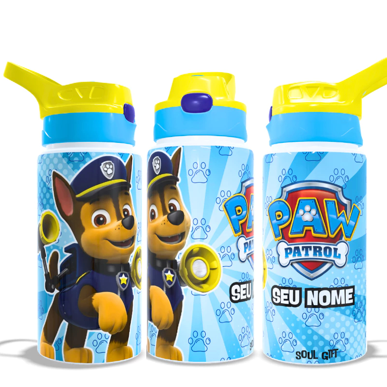 Garrafa Infantil Patrulha Canina Personalizada Com Seu Nome Térmica ou de Alumínio