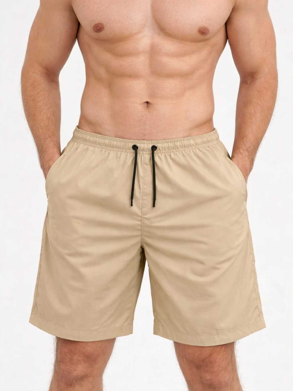 Shorts Masculino Tactel com Elastano – Secagem Rápida, Confortável, Leve, Praia e Dia a Dia (Preto e Bege)