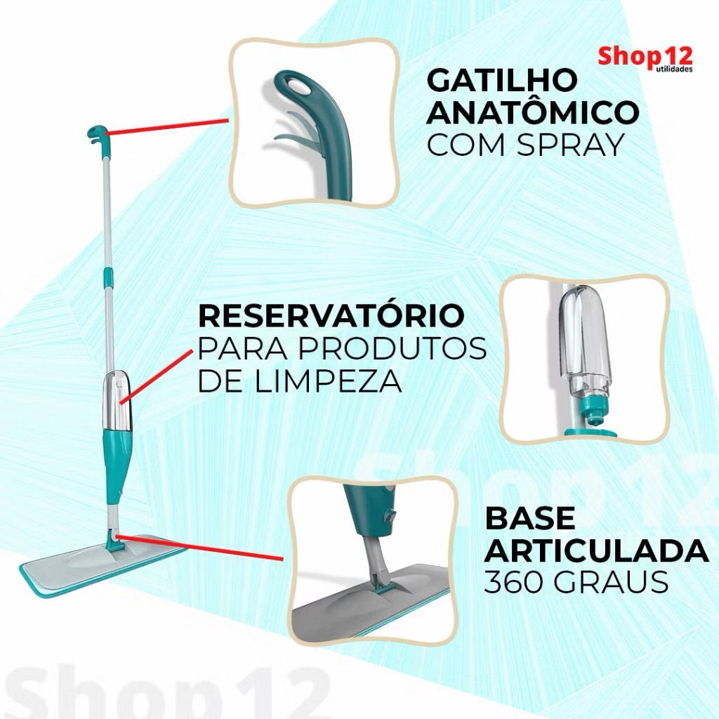 MOP Spray Rodo Esfregão com Reservatório Rodo Magico Limpa Seca