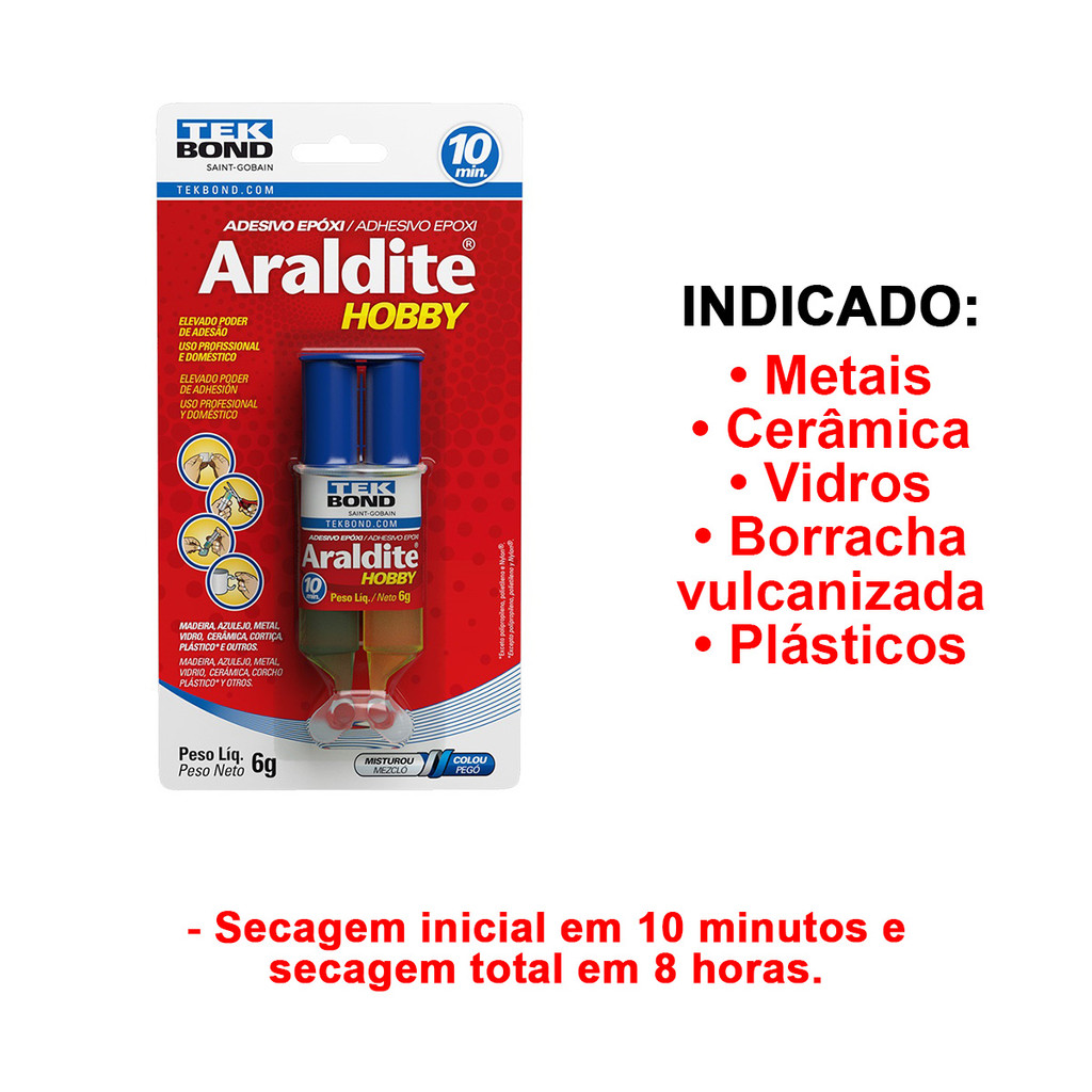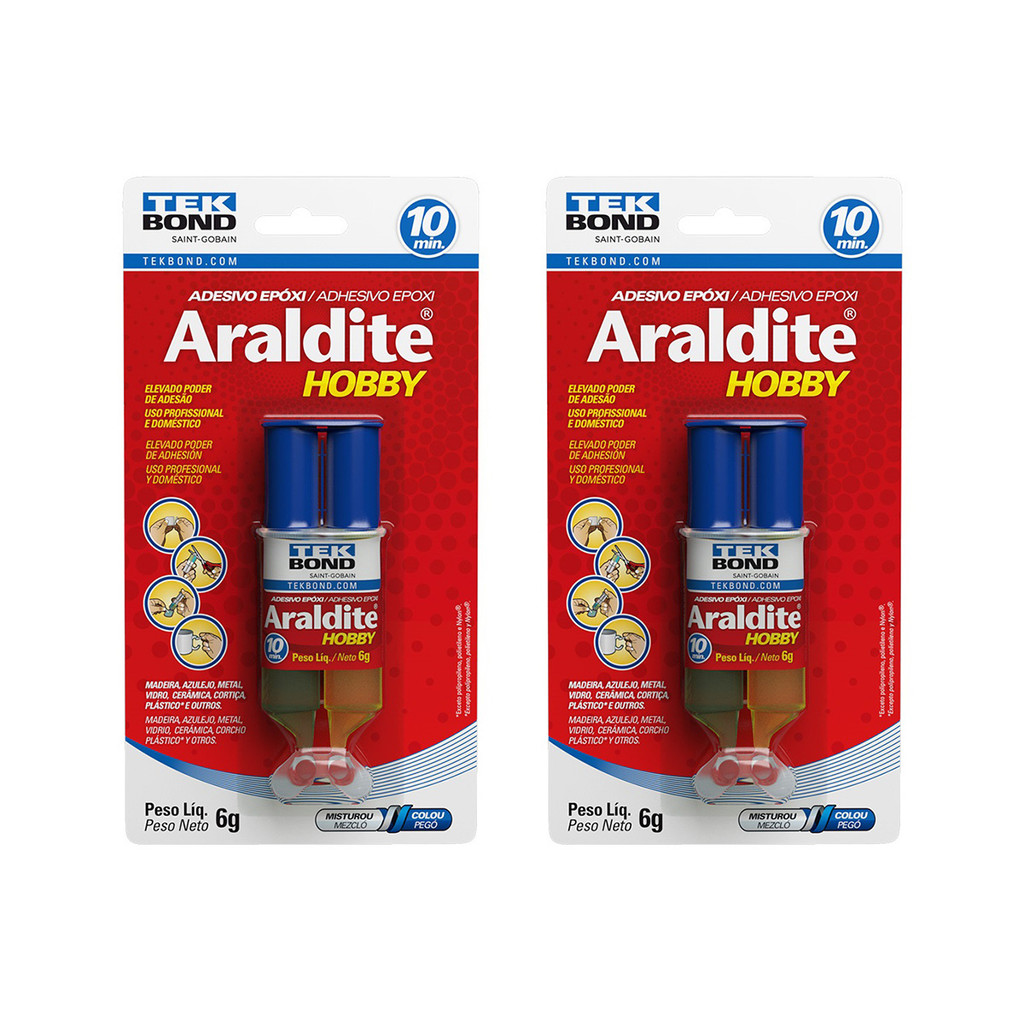 Adesivo Cola Epoxi Araldite Hobby 6G Secagem 10 Minutos Embalagem Seringa Blister