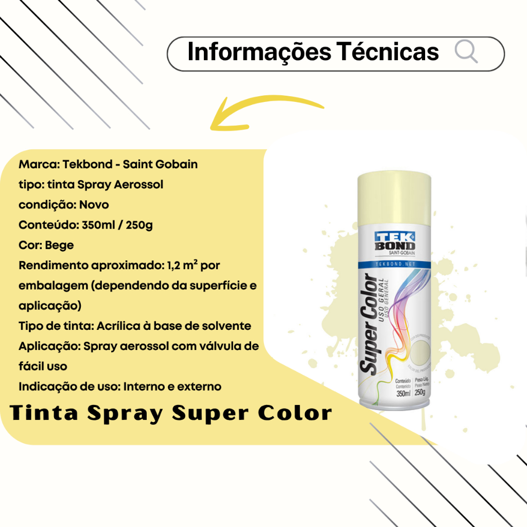Tinta Spray Aerossol Bege Uso Geral 350ml 250g Tekbond
