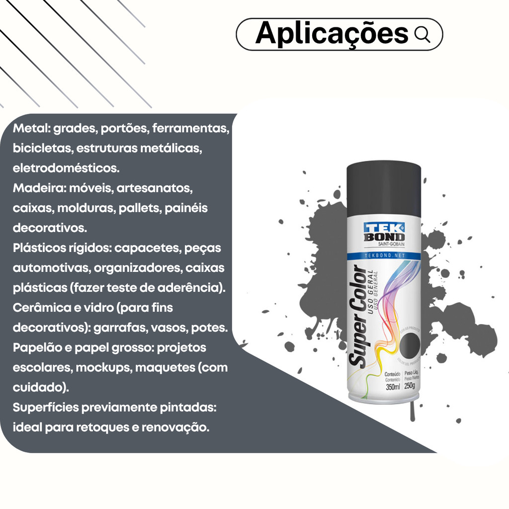 Tinta Spray Aerossol Grafite Uso Geral 350ml 250g Tekbond