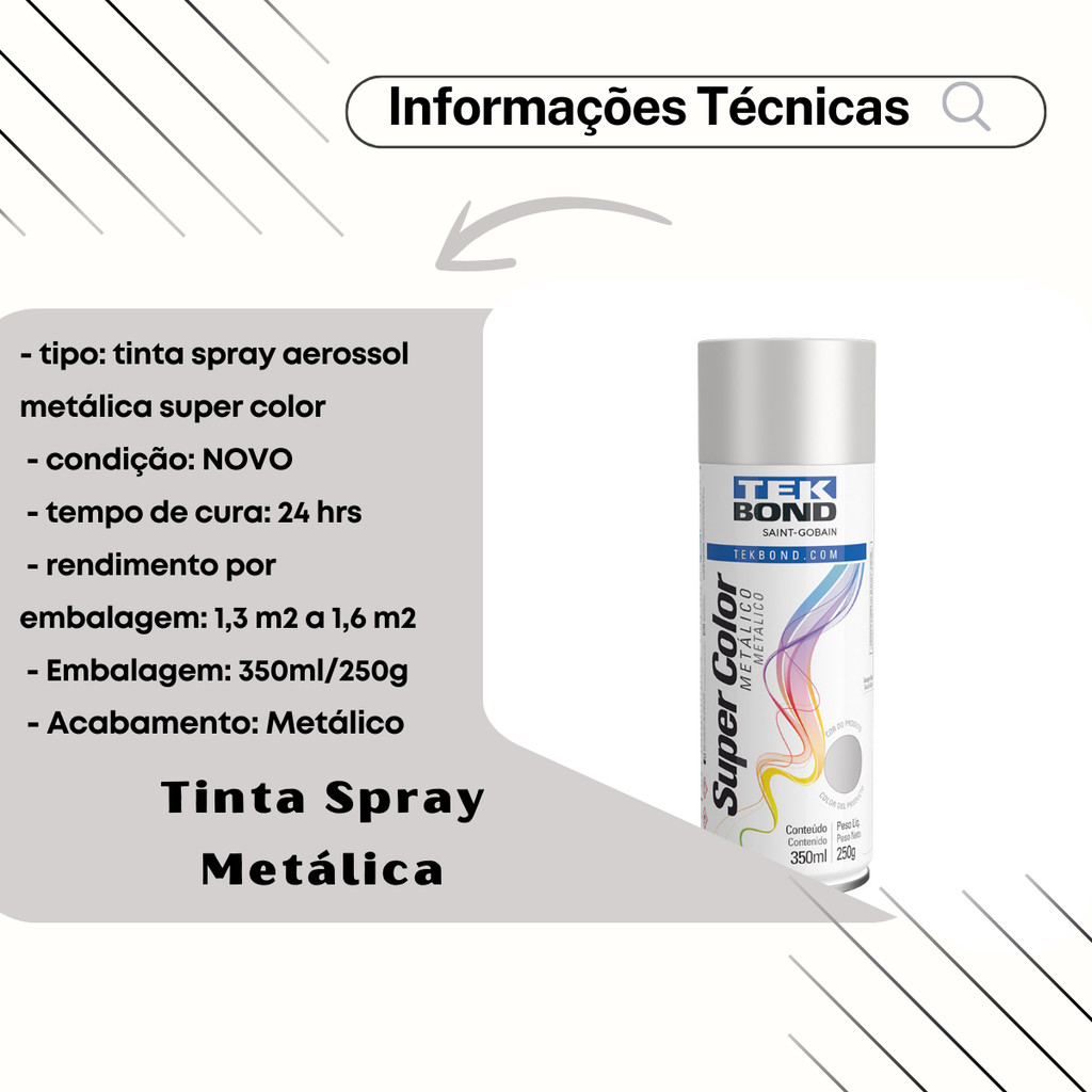 Tinta Spray Aerossol Tekbond Prata Metálico 350ml 250g
