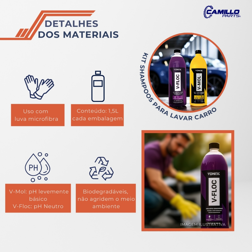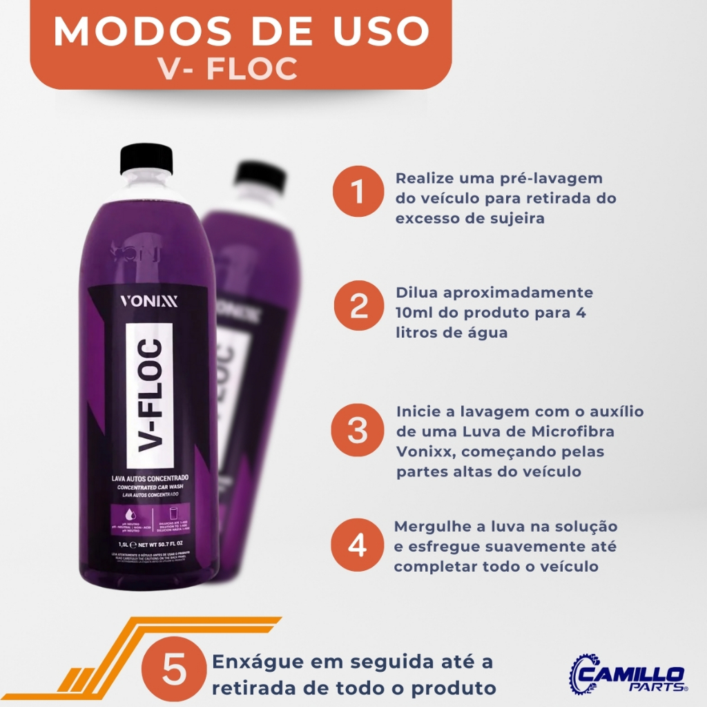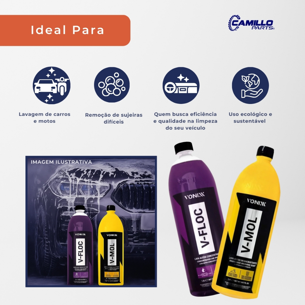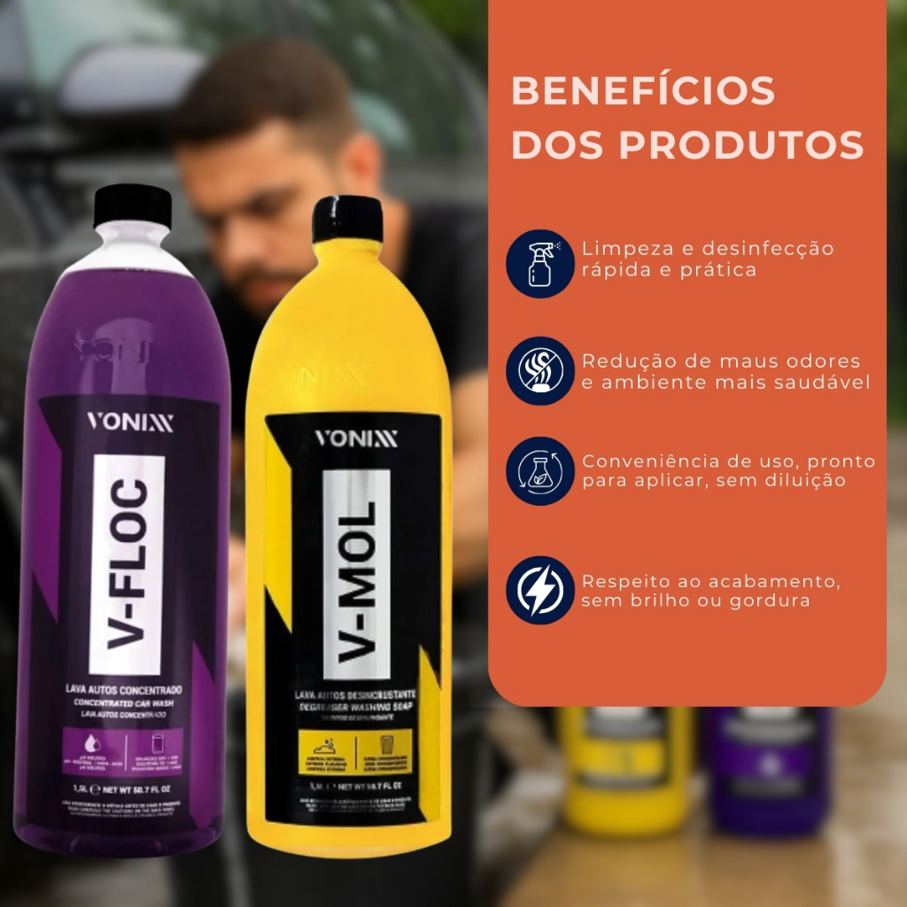 Kit Shampoo Automotivo Vonixx V-Mol + V-Floc 1,5L Cada Limpeza Completa