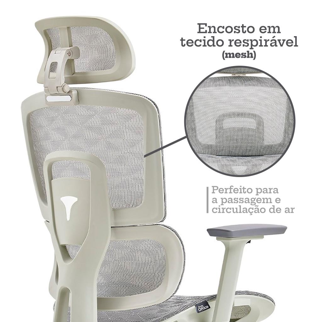 Cadeira de Escritório Dr. Office Business Pro, Cinza, Mesh, 3D, Altura Ajustável, DR-CH-BPR3DGH