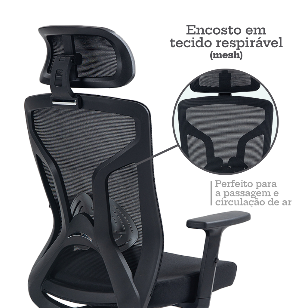 Cadeira de Escritório Diretor Dr.Office Giratória Ergo, Mesh Respirável, Regulagem de Altura