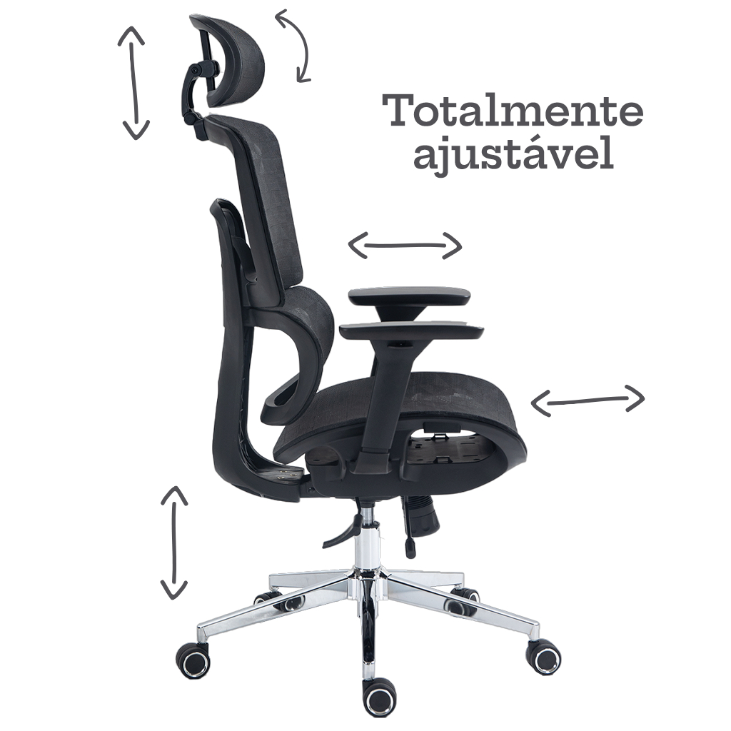 Cadeira de Escritório Dr. Office Business Pro, Preta, Mesh, 3D, Cadeira Dr. Office Business Pro