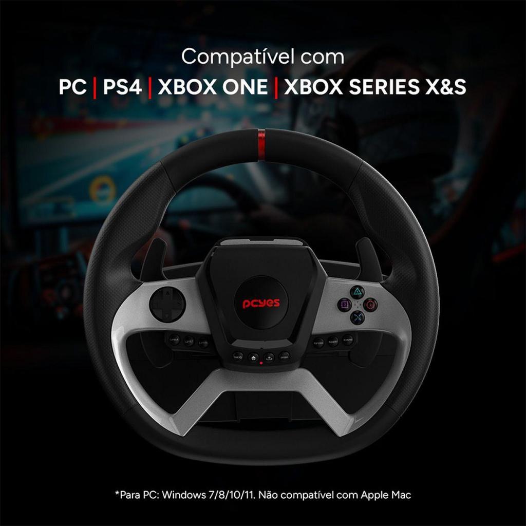 Volante PCYes W270 Para PC, Xbox e Playstation, Force Feedback, Com Pedais e Câmbio, Preto