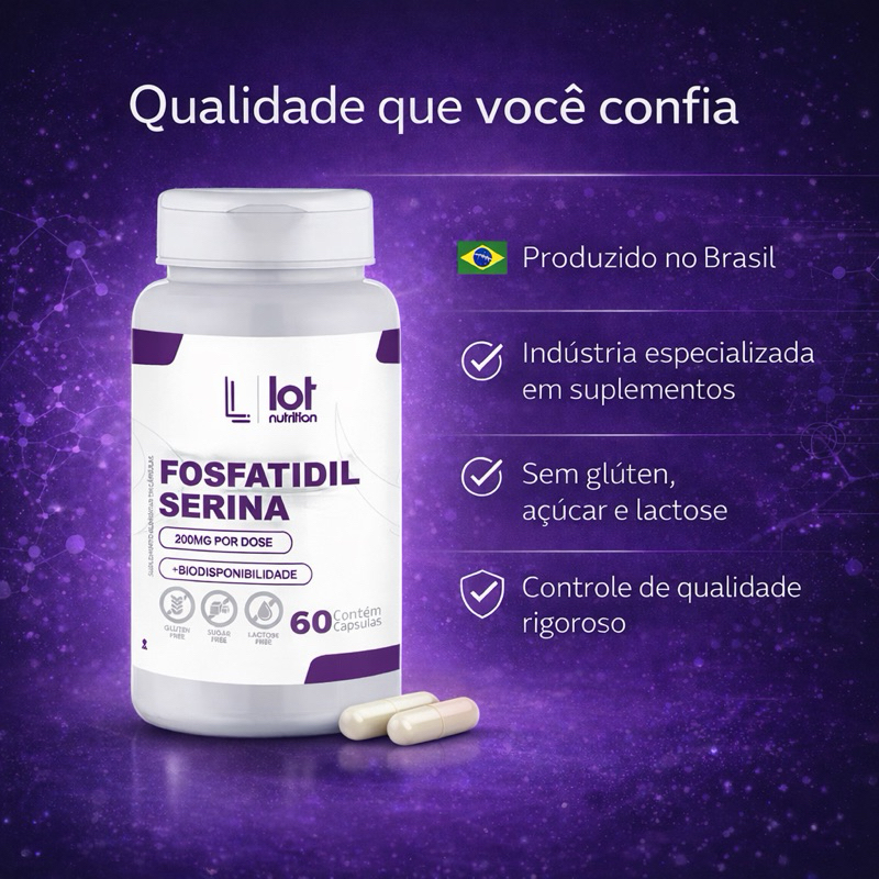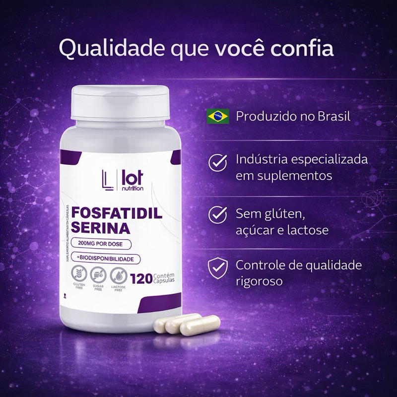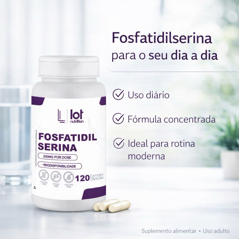 Fosfatidilserina 200mg 120 Cápsulas Memória Foco Cognitivo Lot Nutrition