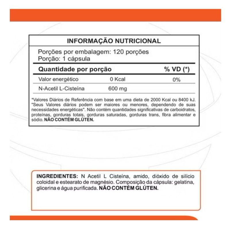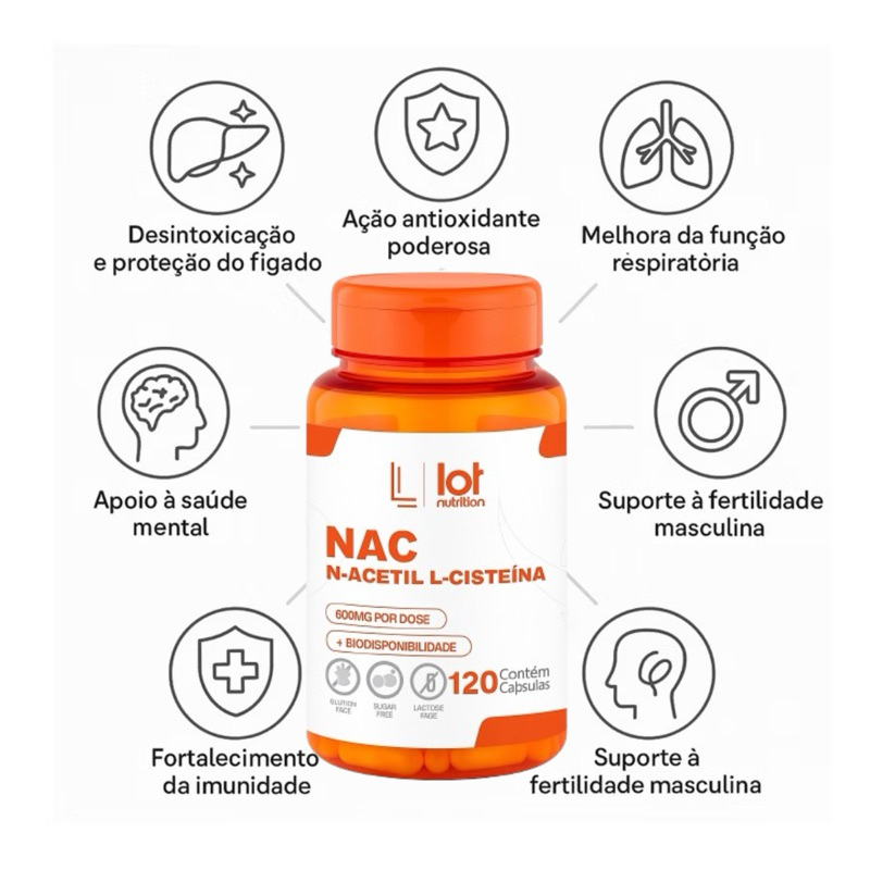 NAC Premium 600mg 120 Cápsulas Antioxidante Acetilcisteína Fígado Detox Lot Nutrition