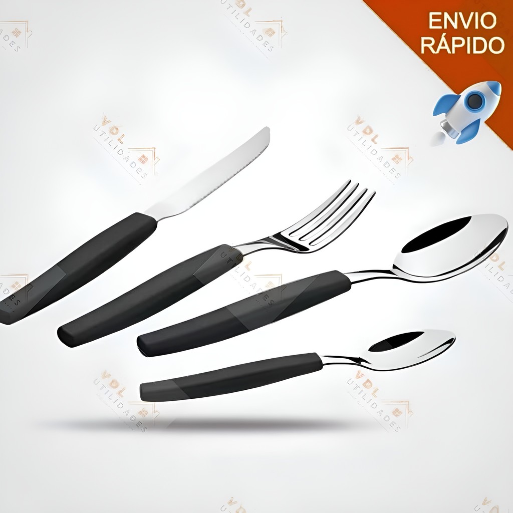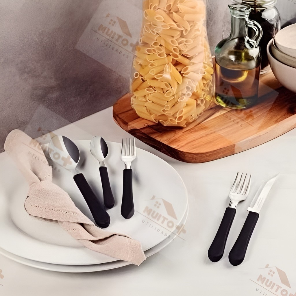 Jogo de Talheres 12 peças Aço Inox Facas Preto Para Casa Cozinha Hotel Fazenda Pousada