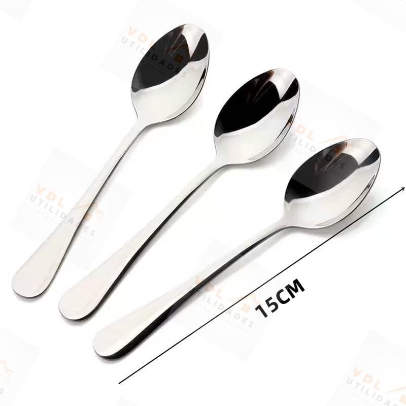 Jogo de Talheres 12 peças de Colheres De Sobremesa Em Aço Inox Mesa Cozinha Jantar
