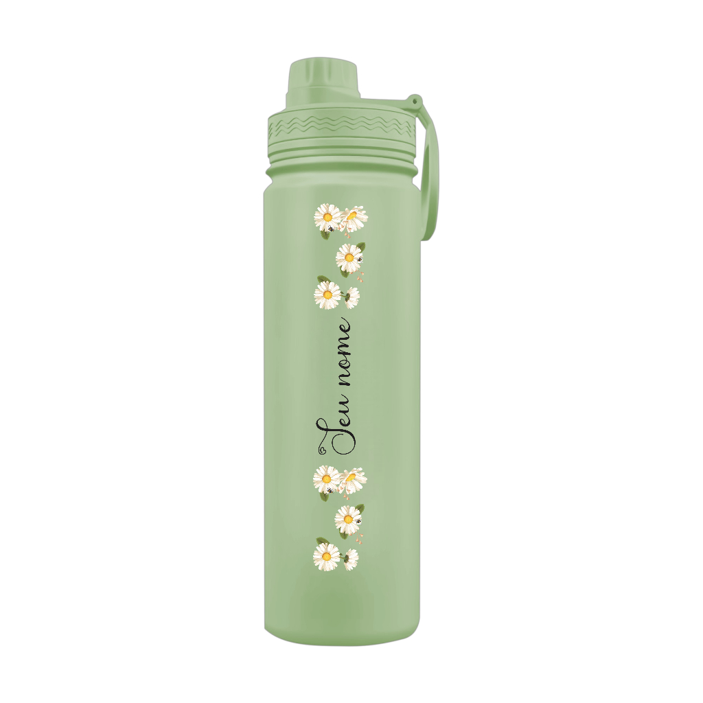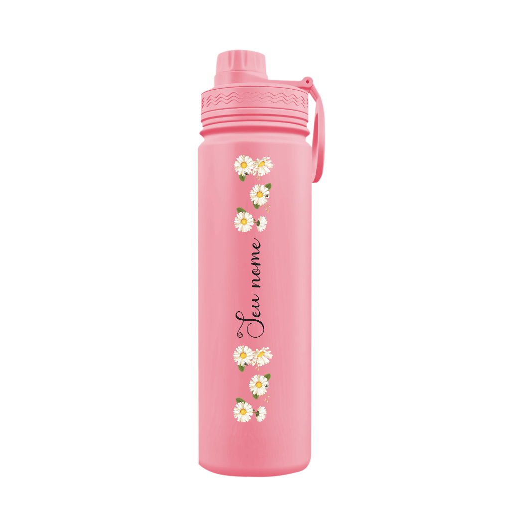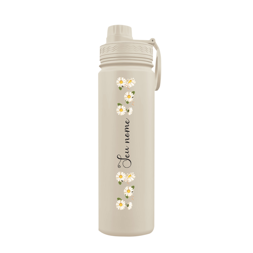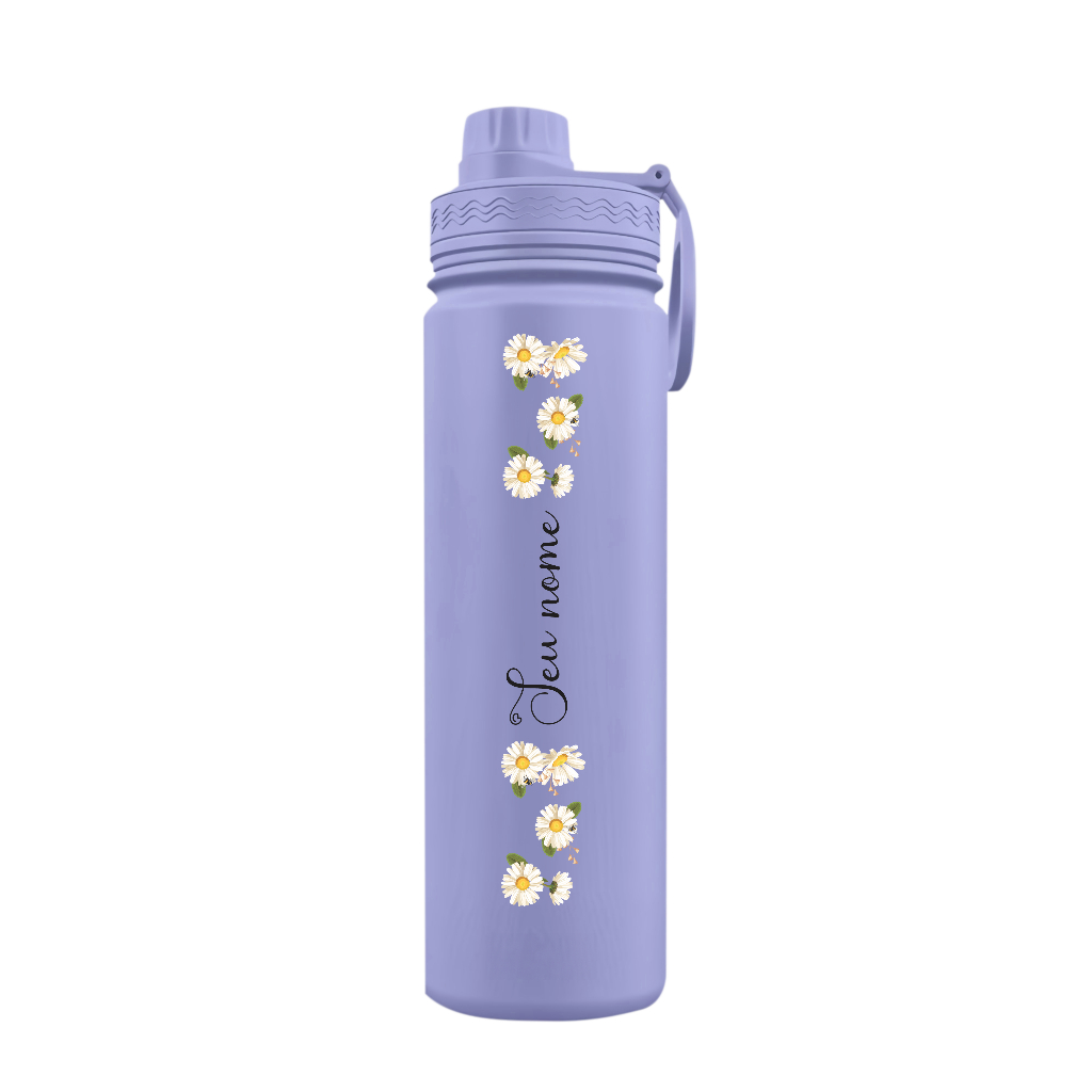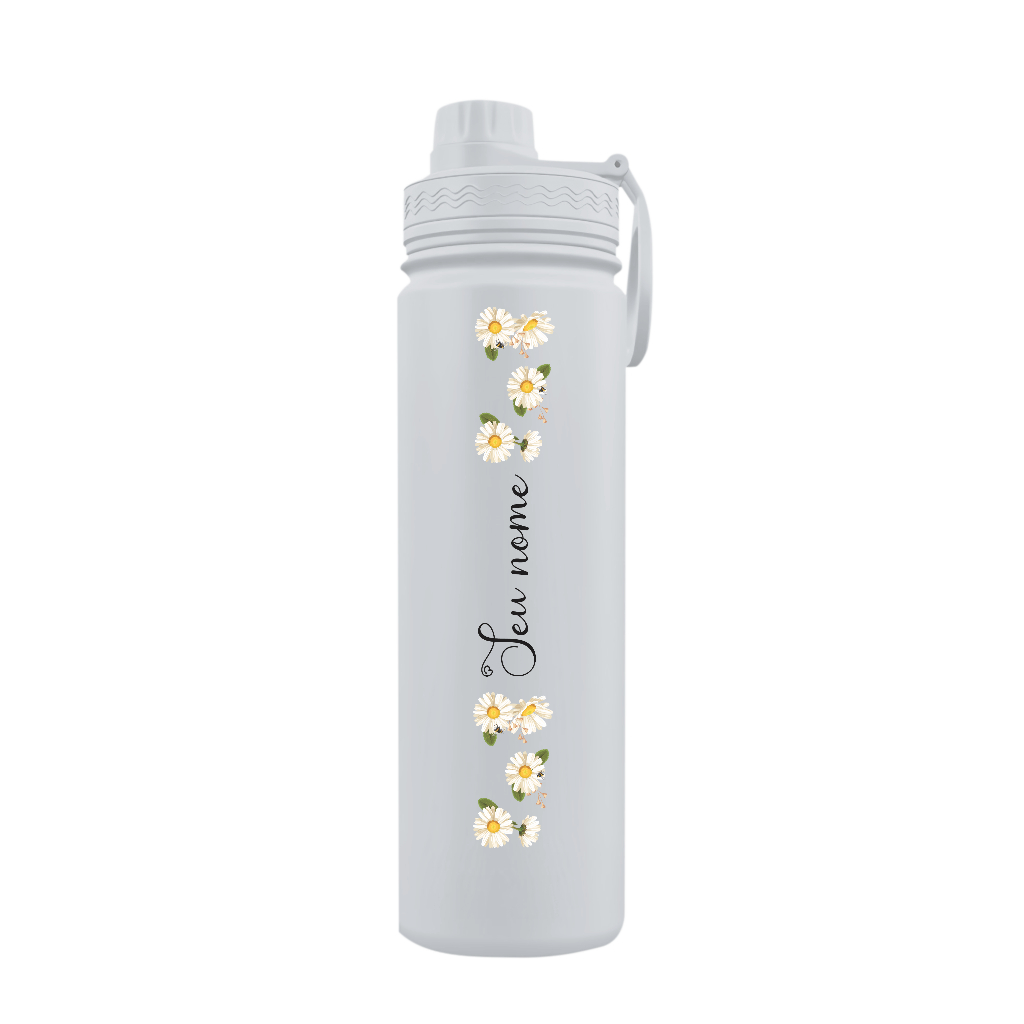 Garrafa Fresh Térmica Aço inoxidável Personalizada com seu Nome - Flores Margaridas - G-002