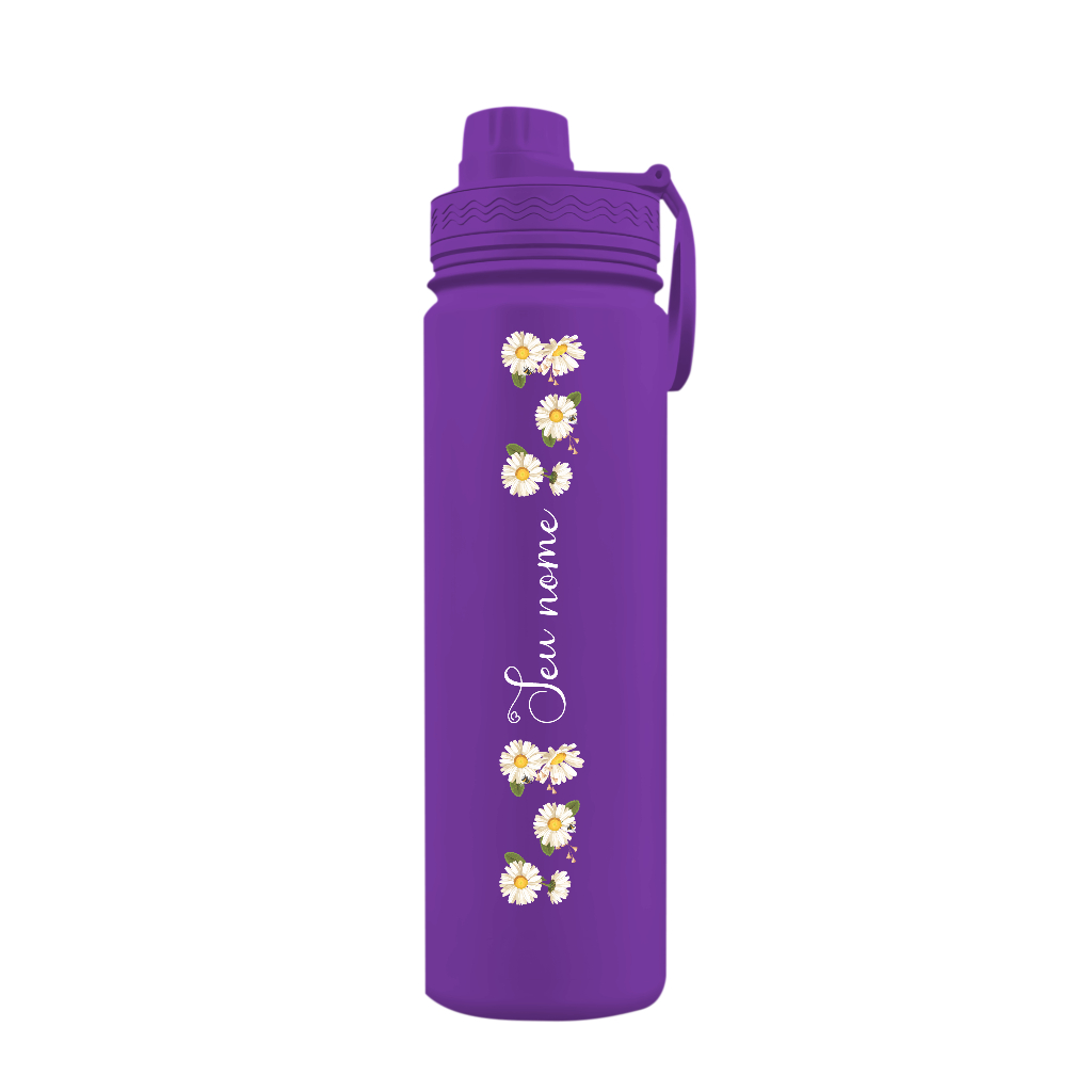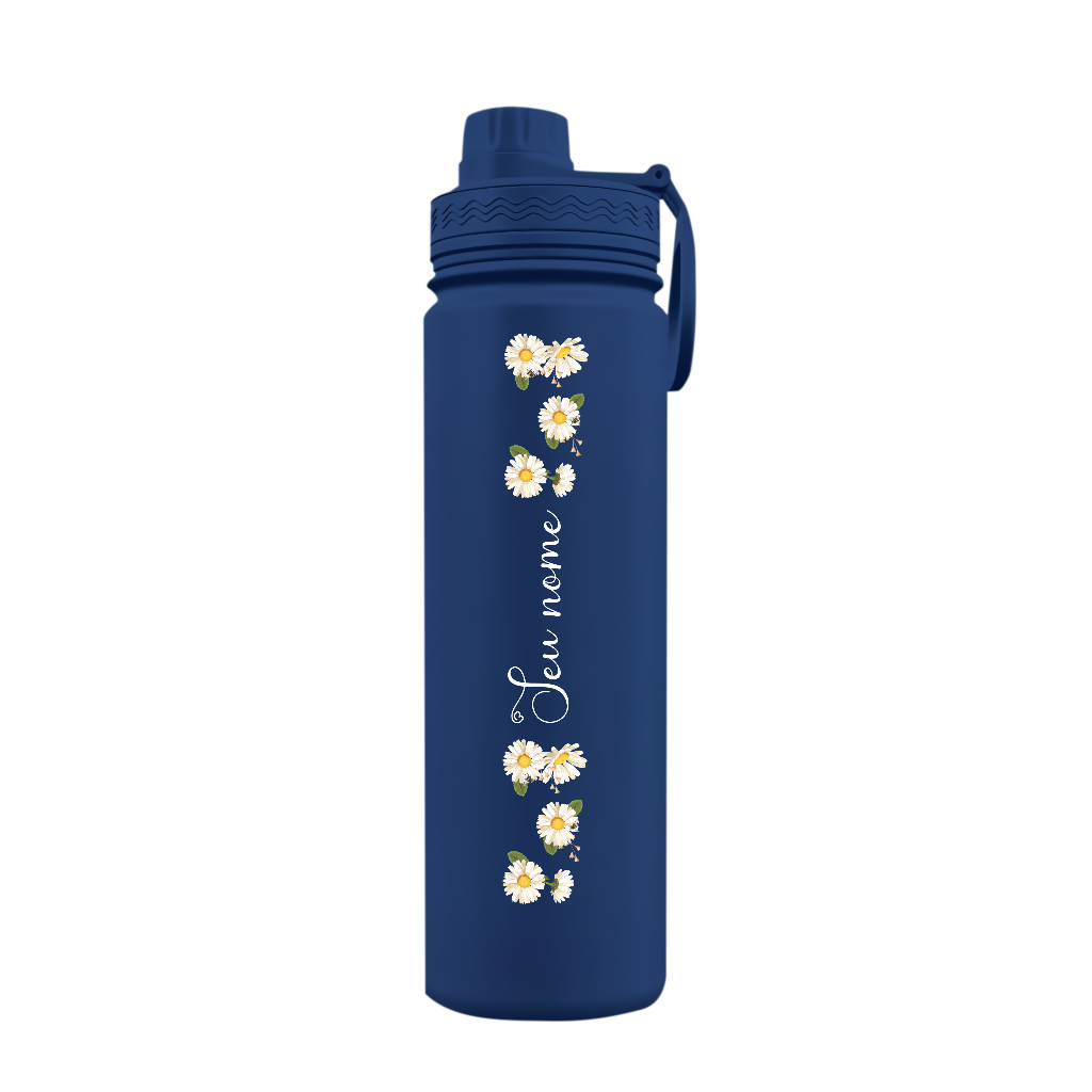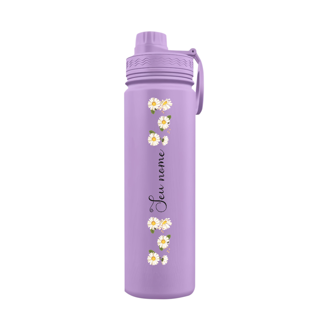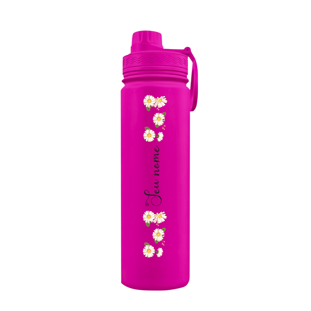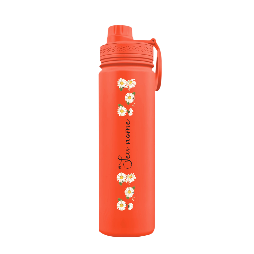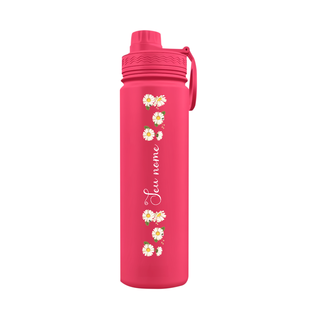 Garrafa Fresh Térmica Aço inoxidável Personalizada com seu Nome - Flores Margaridas - G-002