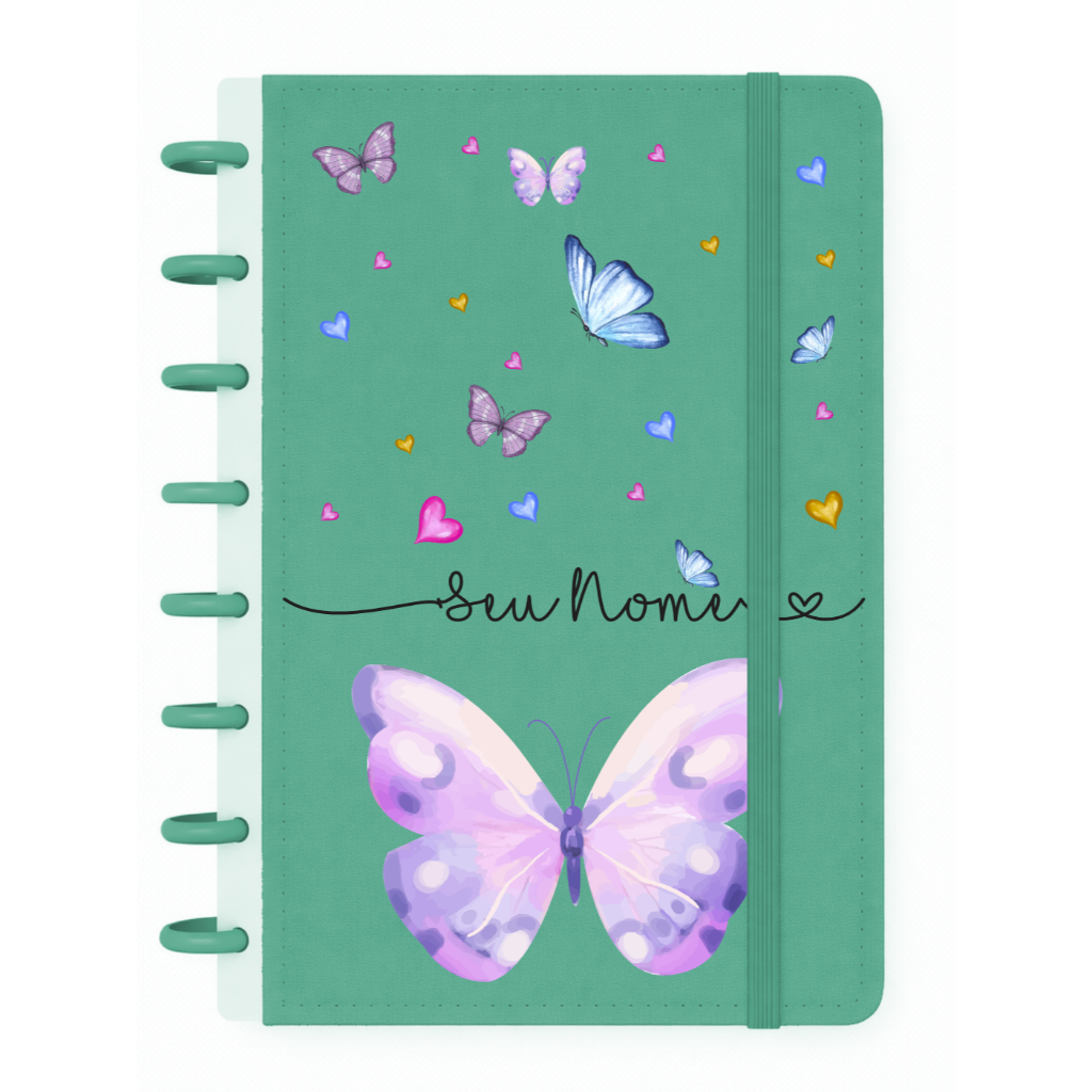 Caderno de Discos e Planner Personalizado - Caderno A4, B5 e A5 - Borboletas Coloridas 🦋