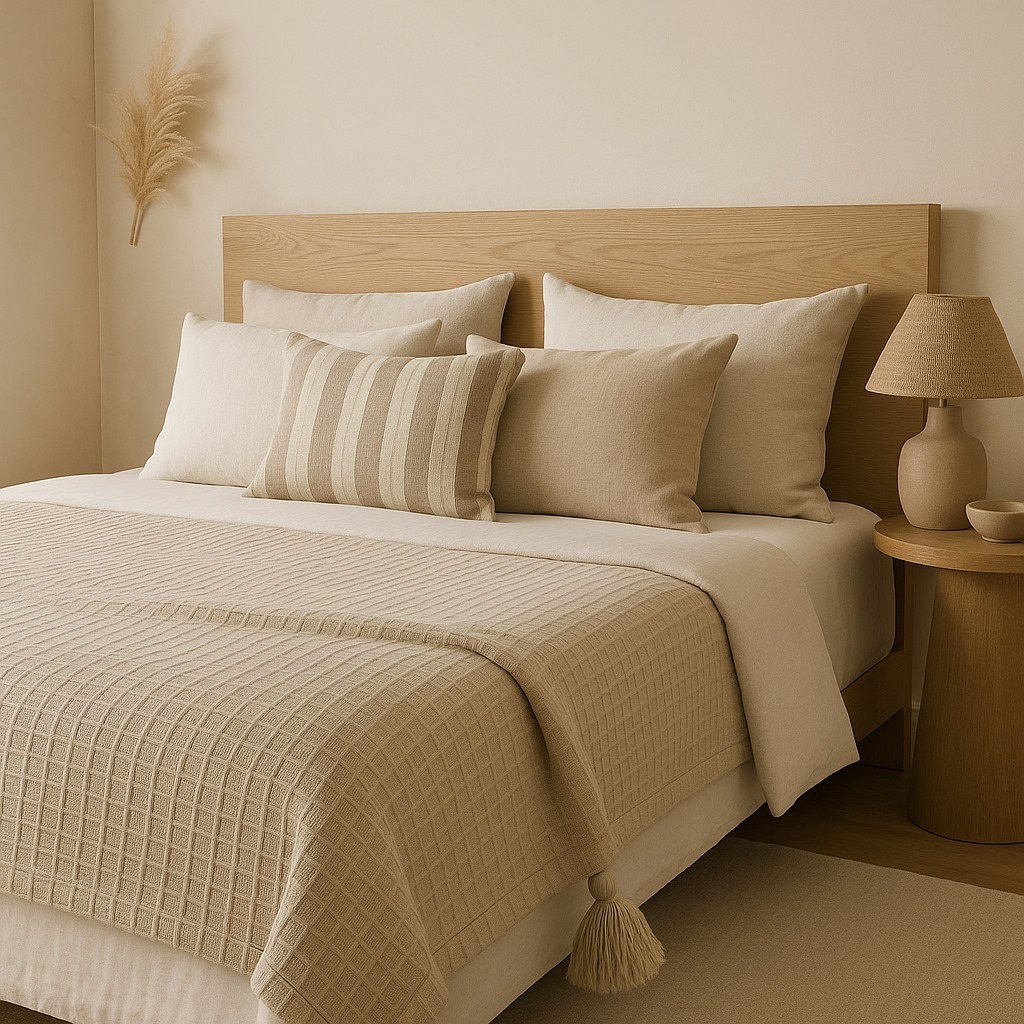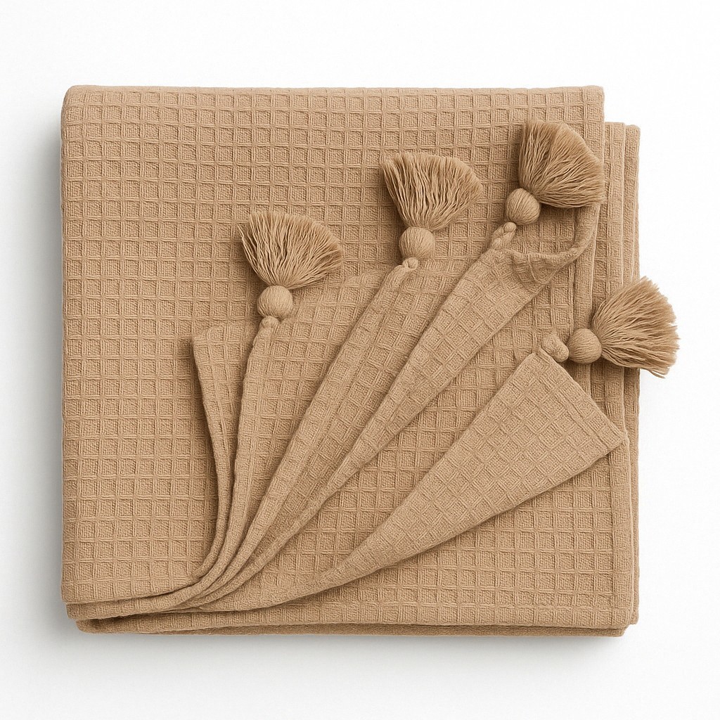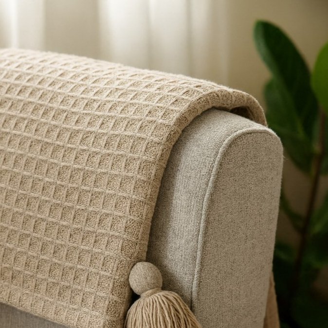 Manta Rústica de Algodão com Pompom – Peseira Decorativa para Sofá 1,40m x 1,40m