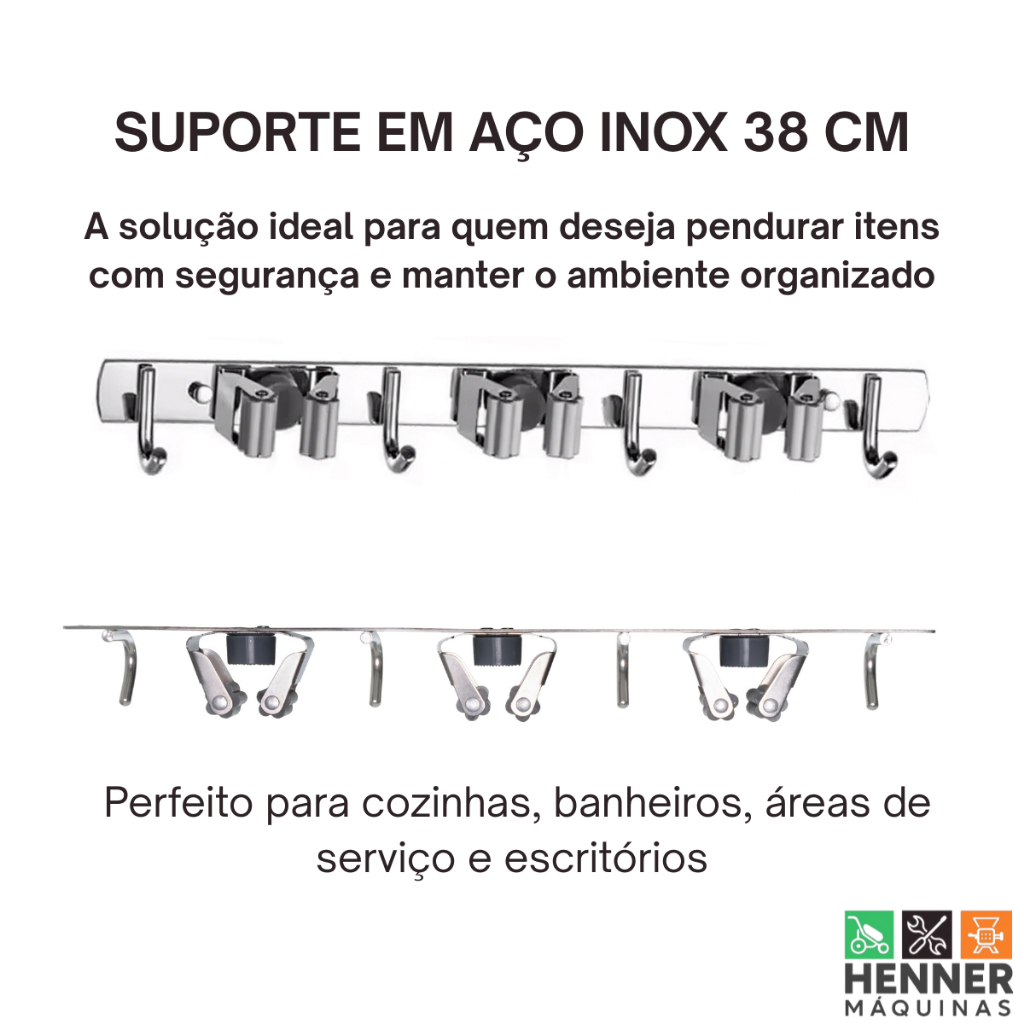 Suporte Gancho Inox Pendurar Vassoura Pá Rodo Mop 7 Posições