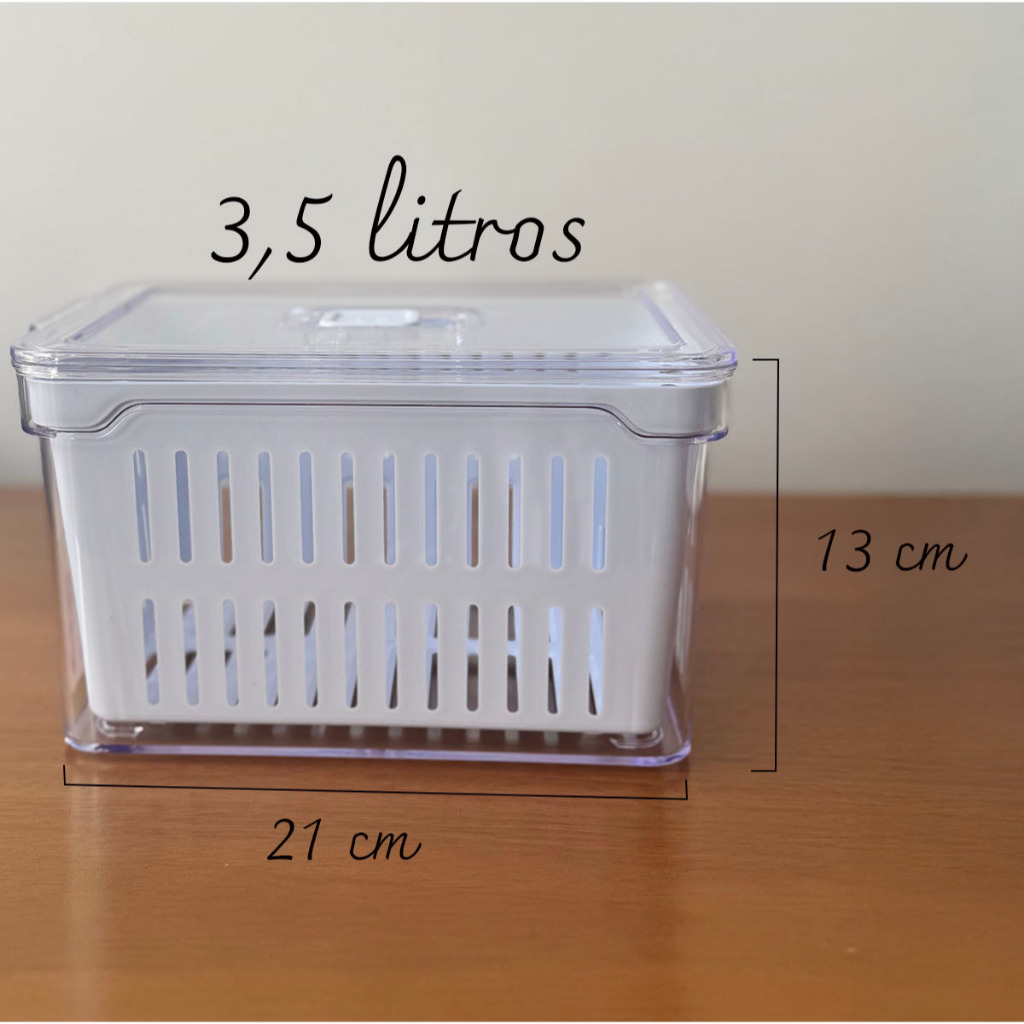 Organizador de geladeira quadrado 3,5 litros cesto com tampa para alimentos vedação
