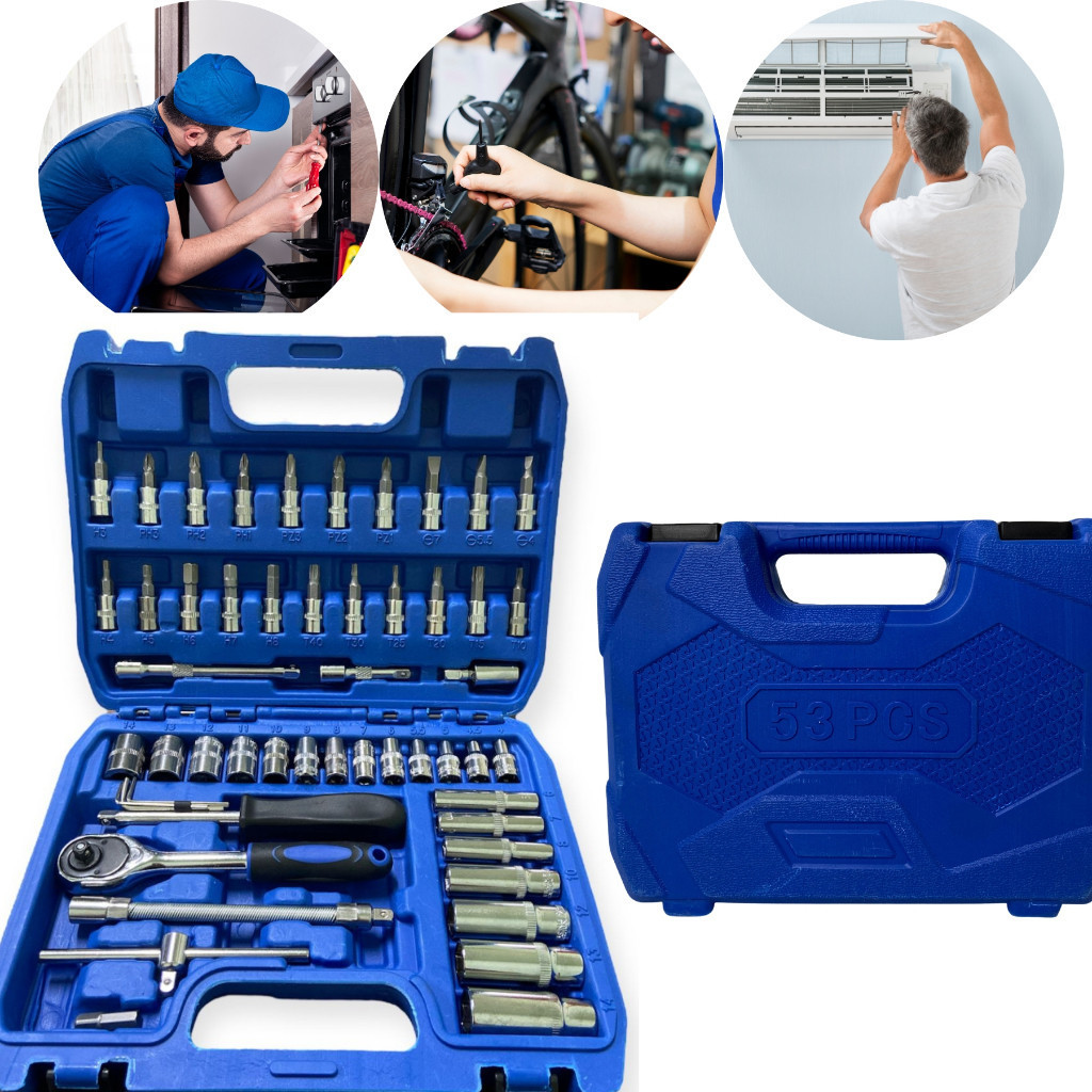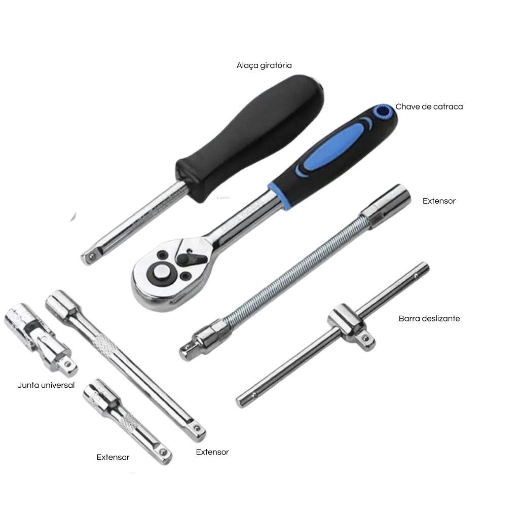 Jogo Completo De Soquete 53 Peças 1/4 Catraca Chave Allen Com Maleta