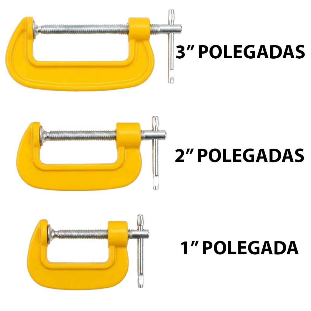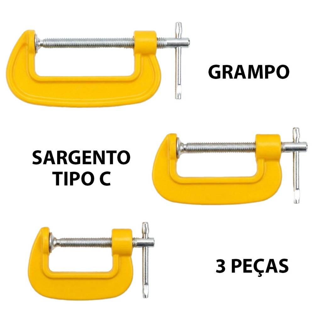 Jogo Grampo Sargento Tipo C Fixação 3 Peças