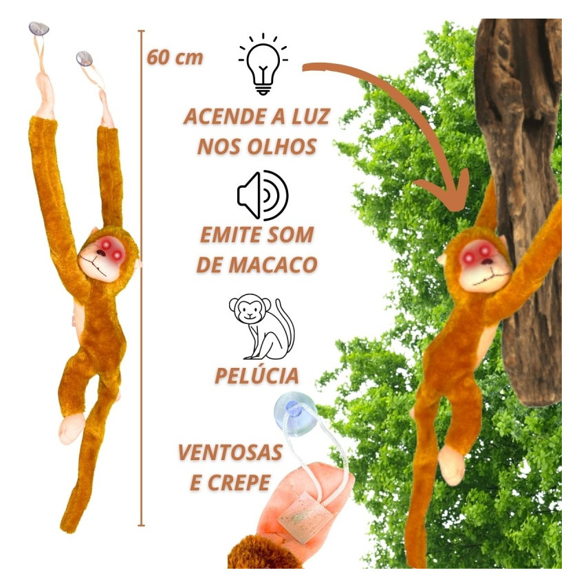 Macaco Pelúcia Com Som E Luz De Pendurar Antialérgico Grita