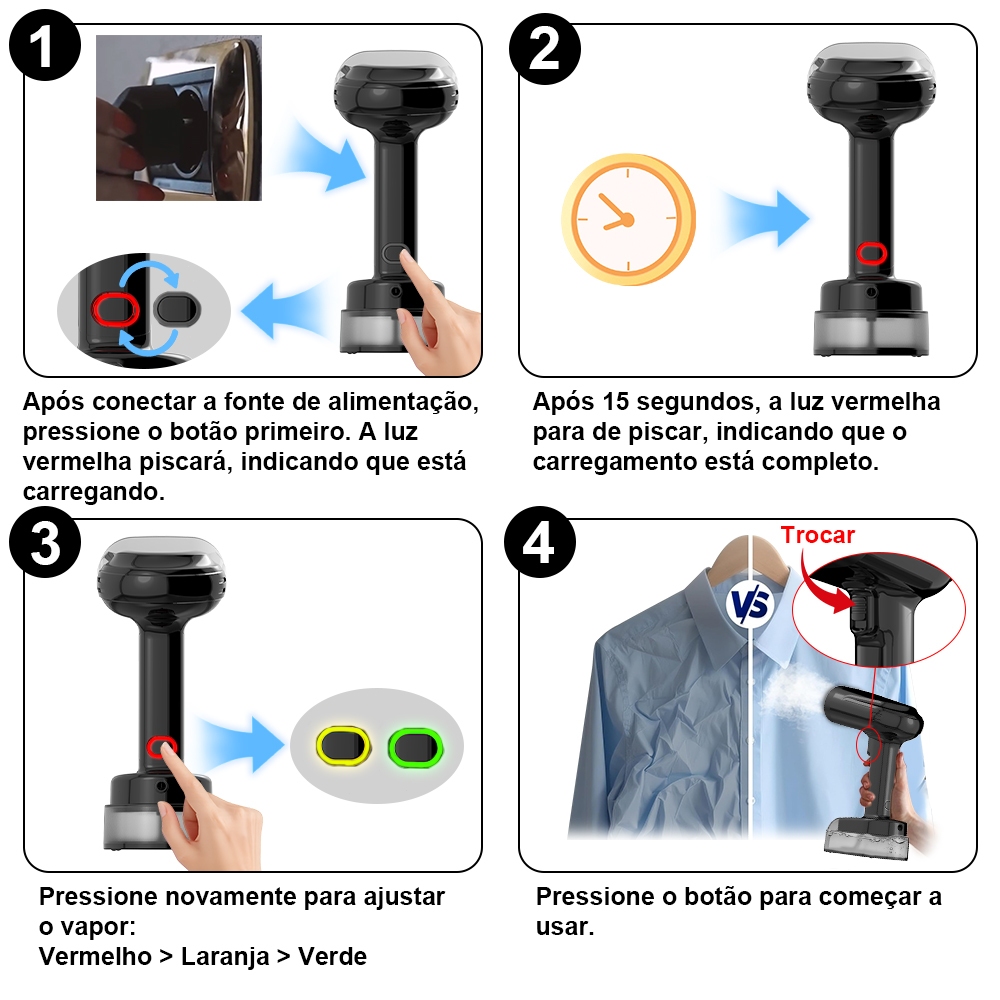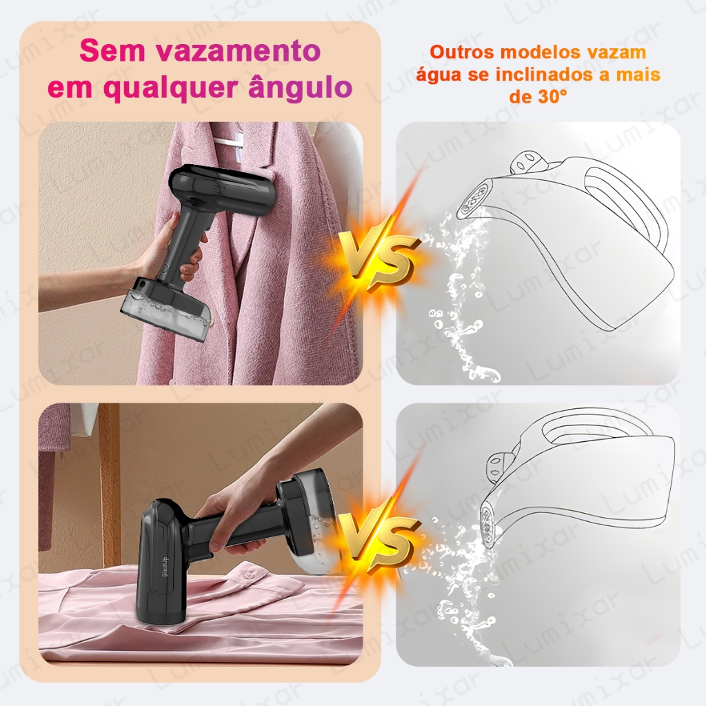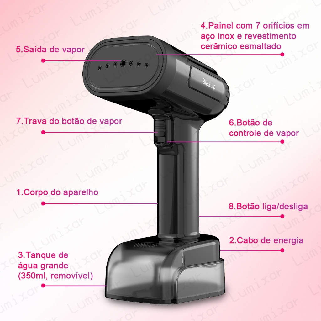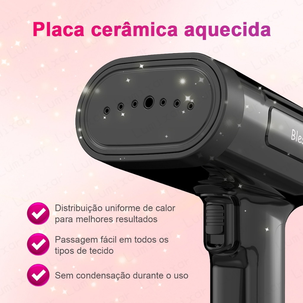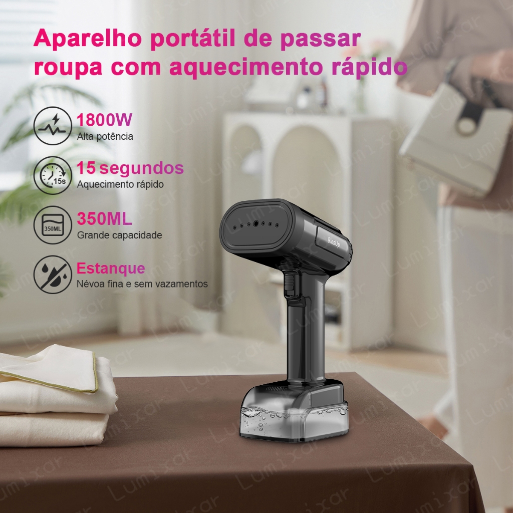 Vaporizador Portátil 1800W 350ml Anti-Gotejamento, Painel Cerâmico, Passagem Vertical e Horizontal, Desligamento Automát