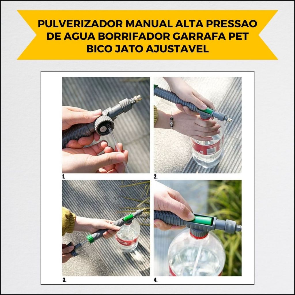 Pulverizador Manual Alta Pressao de Agua Borrifador Garrafa Pet Bico Jato Ajustavel Jardim Plantas