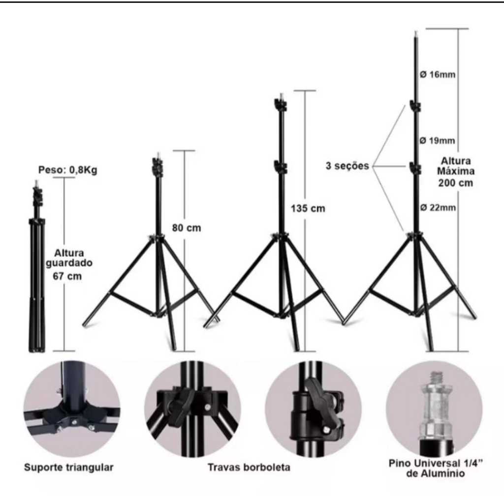 Tripé MTG-2020 - 2 Metros de Altura