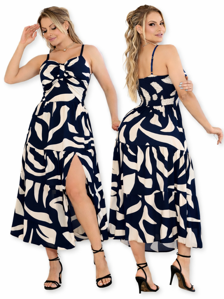 Vestido Midi Exclusivo Moderno Cintura Ajustada e Caimento Perfeito Cheio de Personalidade