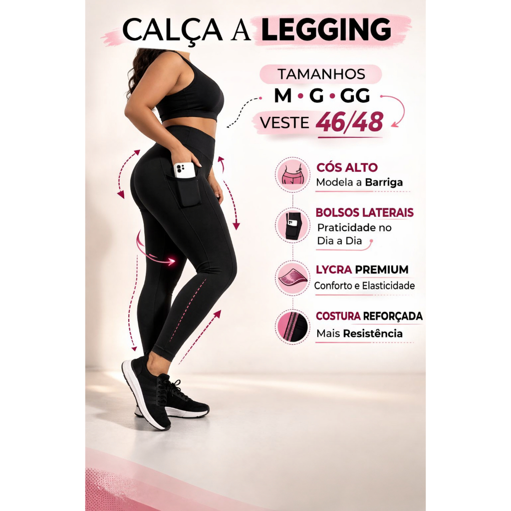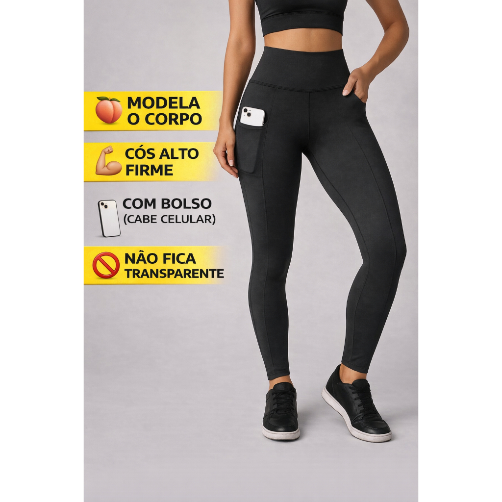 🖤 CALÇA LEGGING Cós Alto Zero Transparência Lycra Alta Compressão ELASTANO, Conforto, Firmeza e Modelagem perfeita par