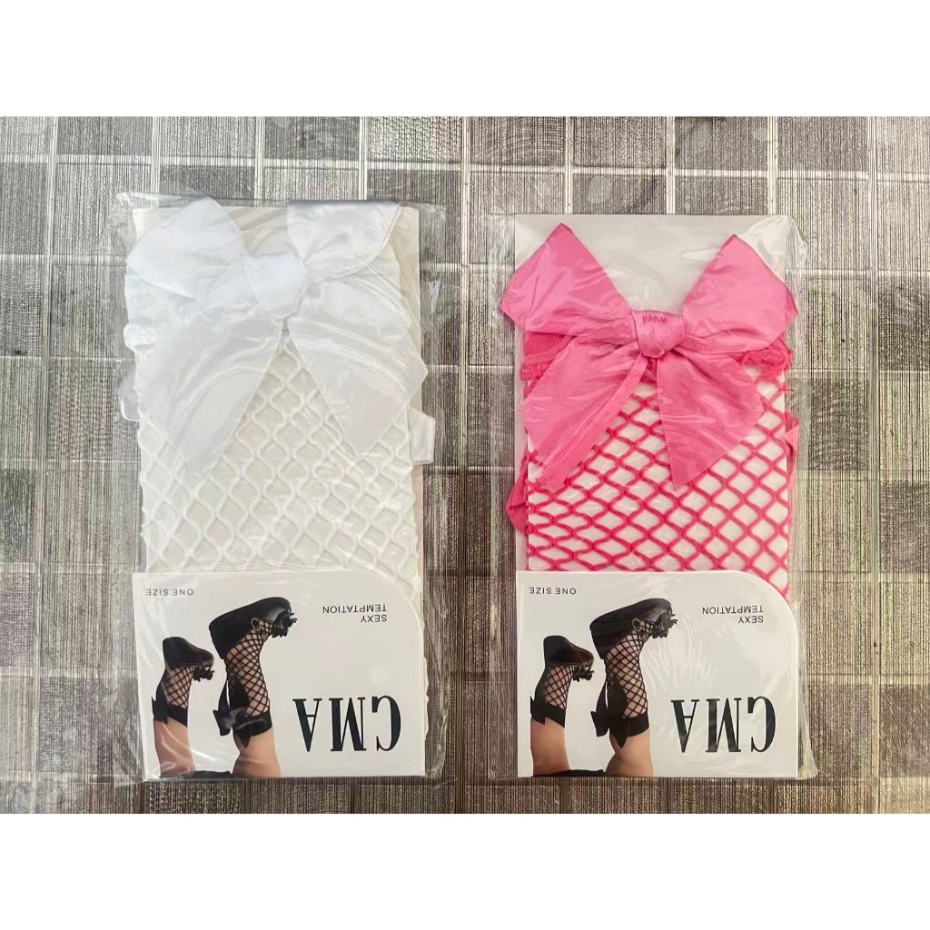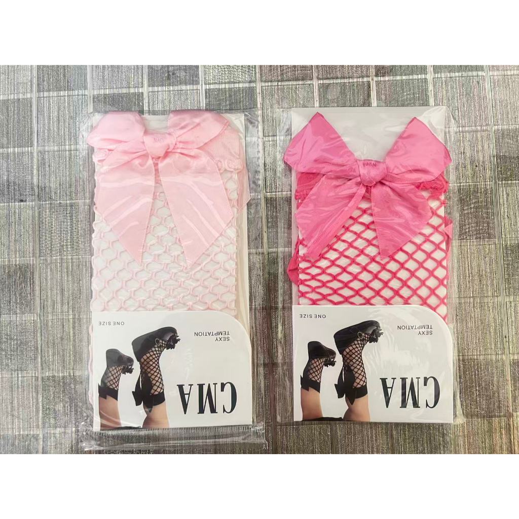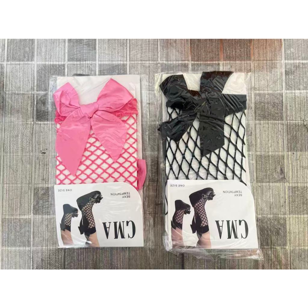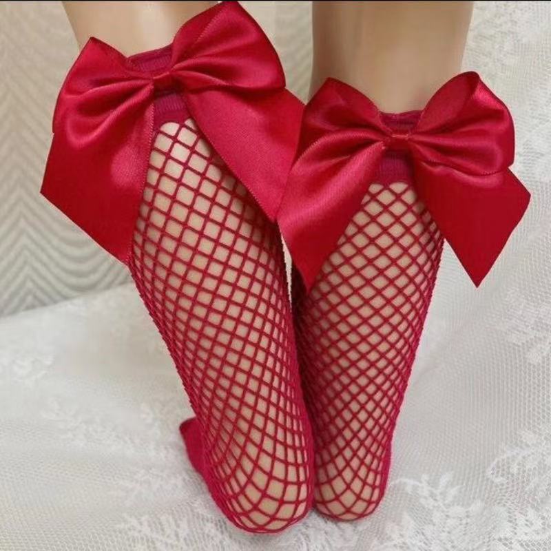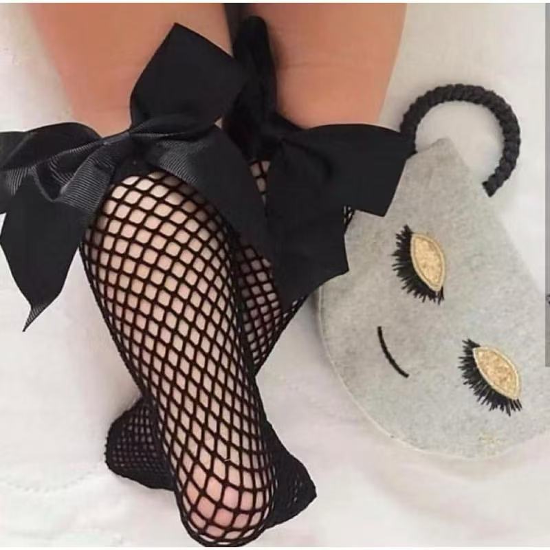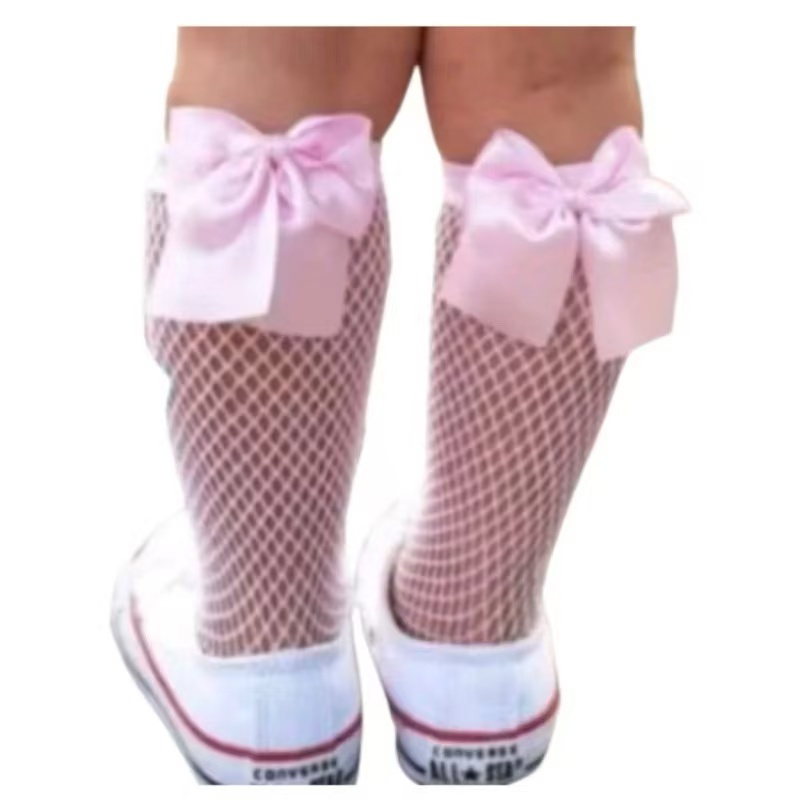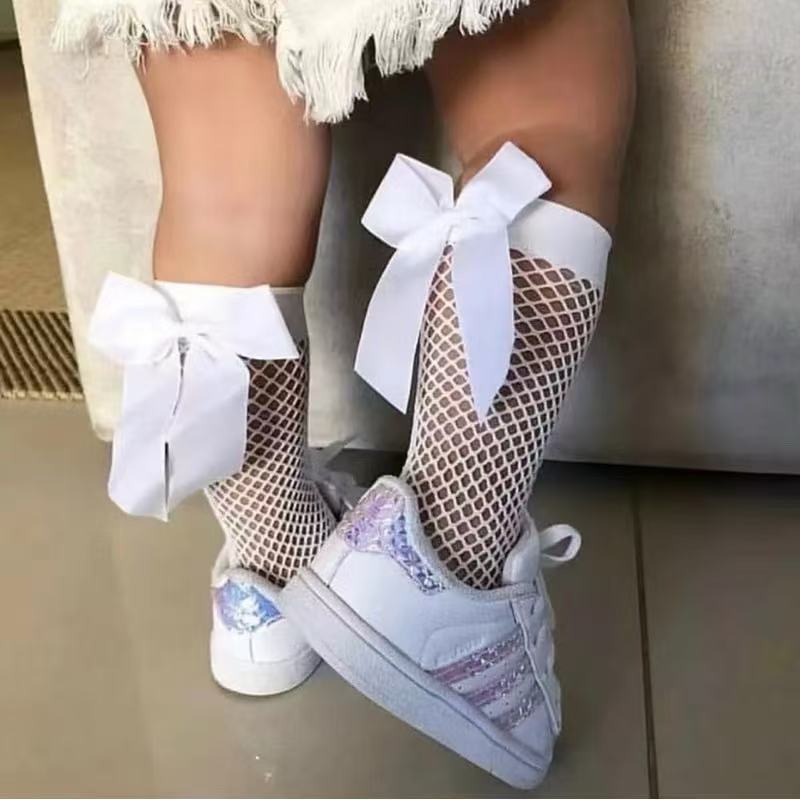 Kit 1-2 Pares Meias Arrastão 3/4 Infantil Com Laço Moda Blogueira Mini Diva