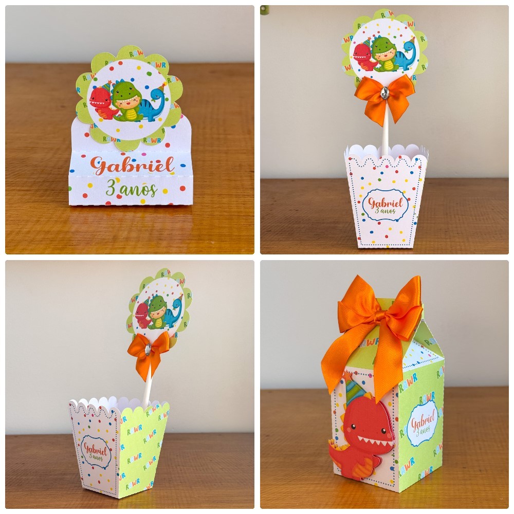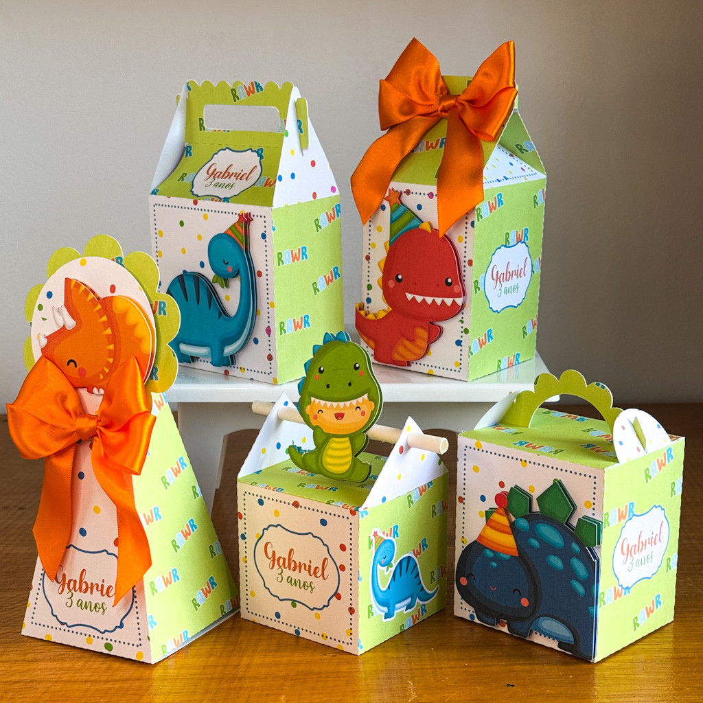 Kit Papelaria Personalizada Dino Baby Bebe Caixa Caixinha para Festa DESMONTADO