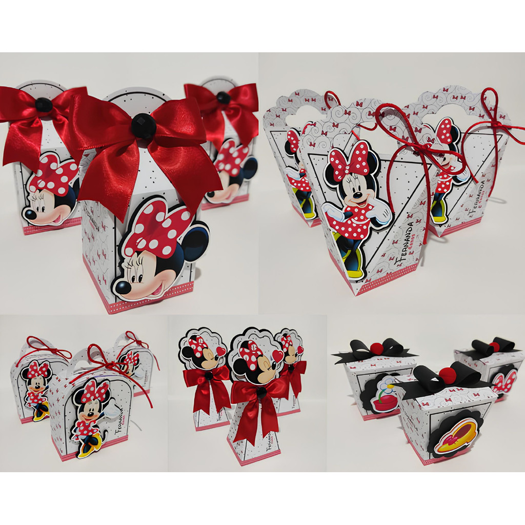Kit Papelaria Personalizada Minnie Vermelha Caixa Caixinha para Festa DESMONTADO