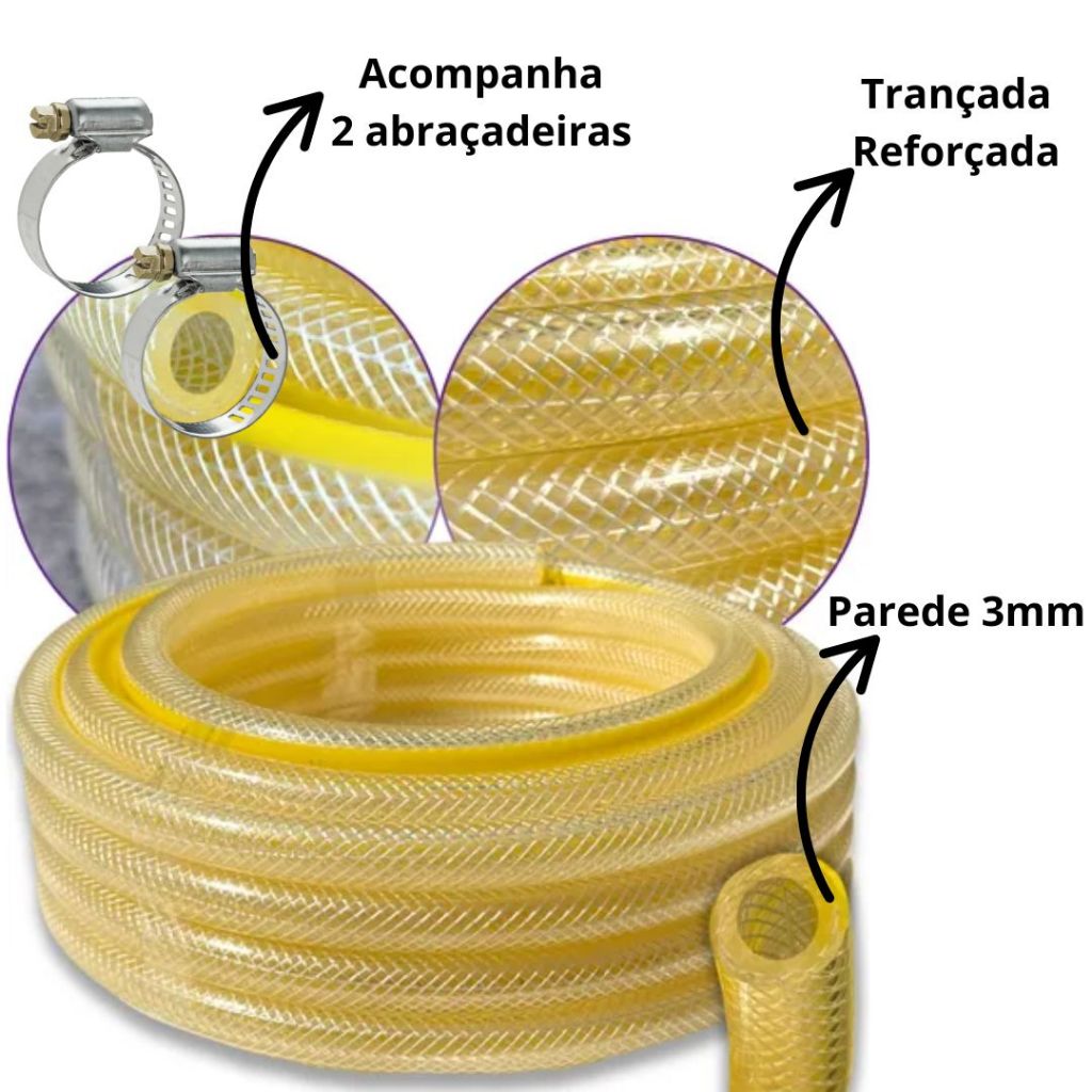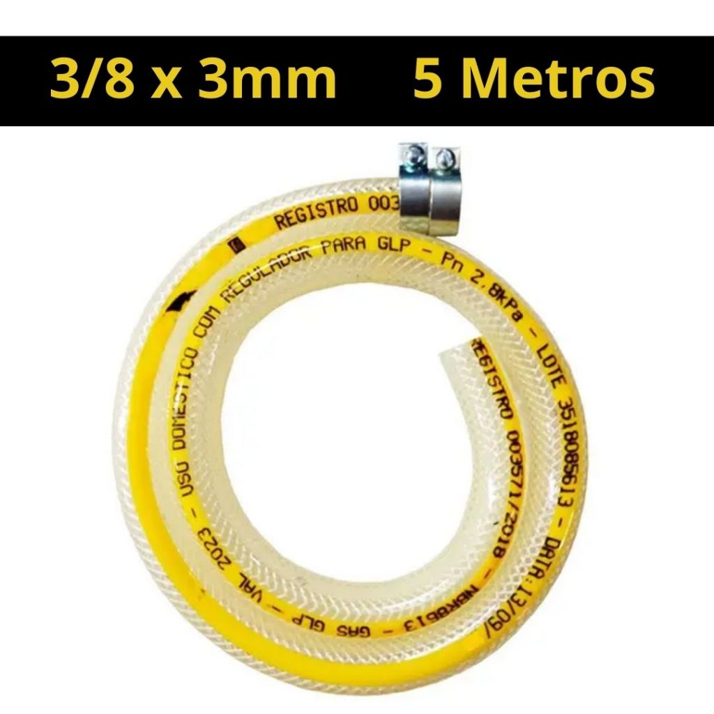 Mangueira de Gás Cozinha Fogão Botijão GLP Trançada 3/8 x 3 mm + 2 Abraçadeiras 1M 2M 3M 4M 5M
