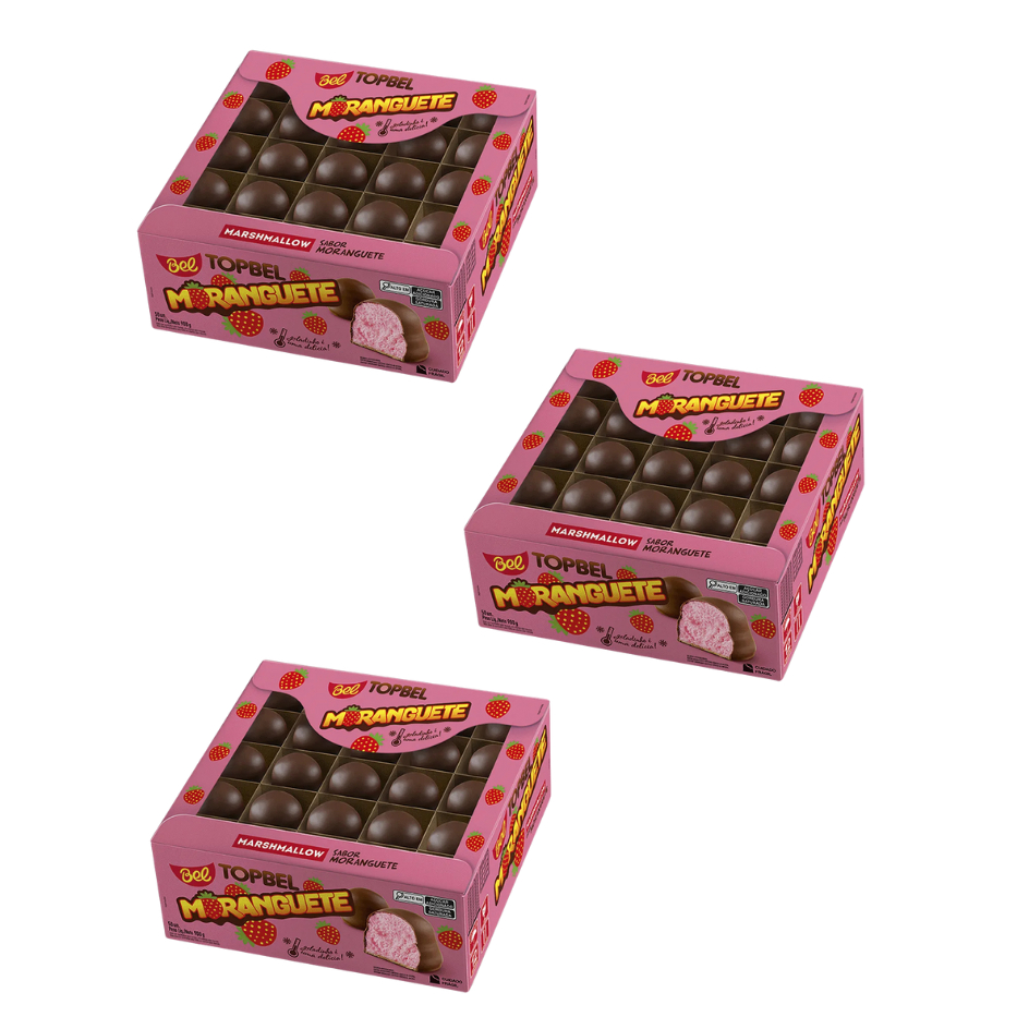 Moranguete TopBel 50 unidades – Bombom de Marshmallow Sabor Morango Coberto com Chocolate