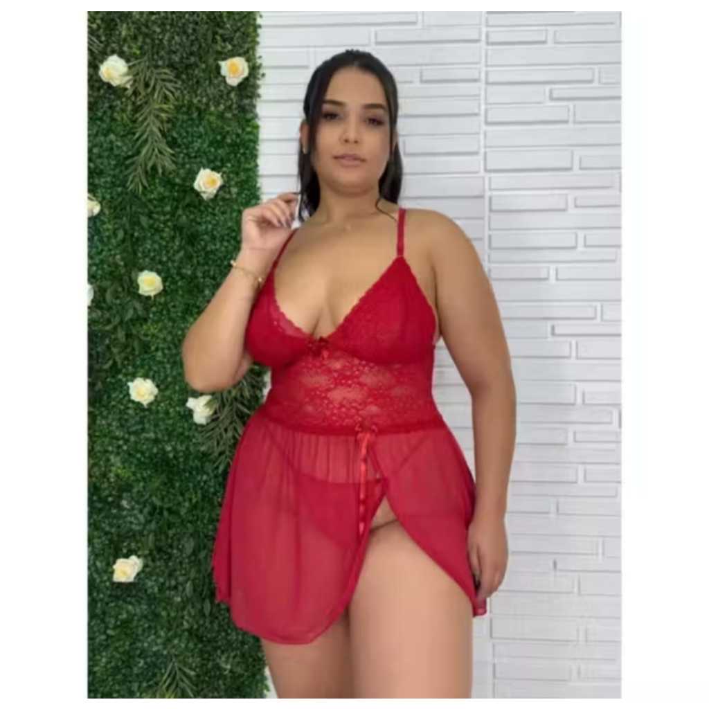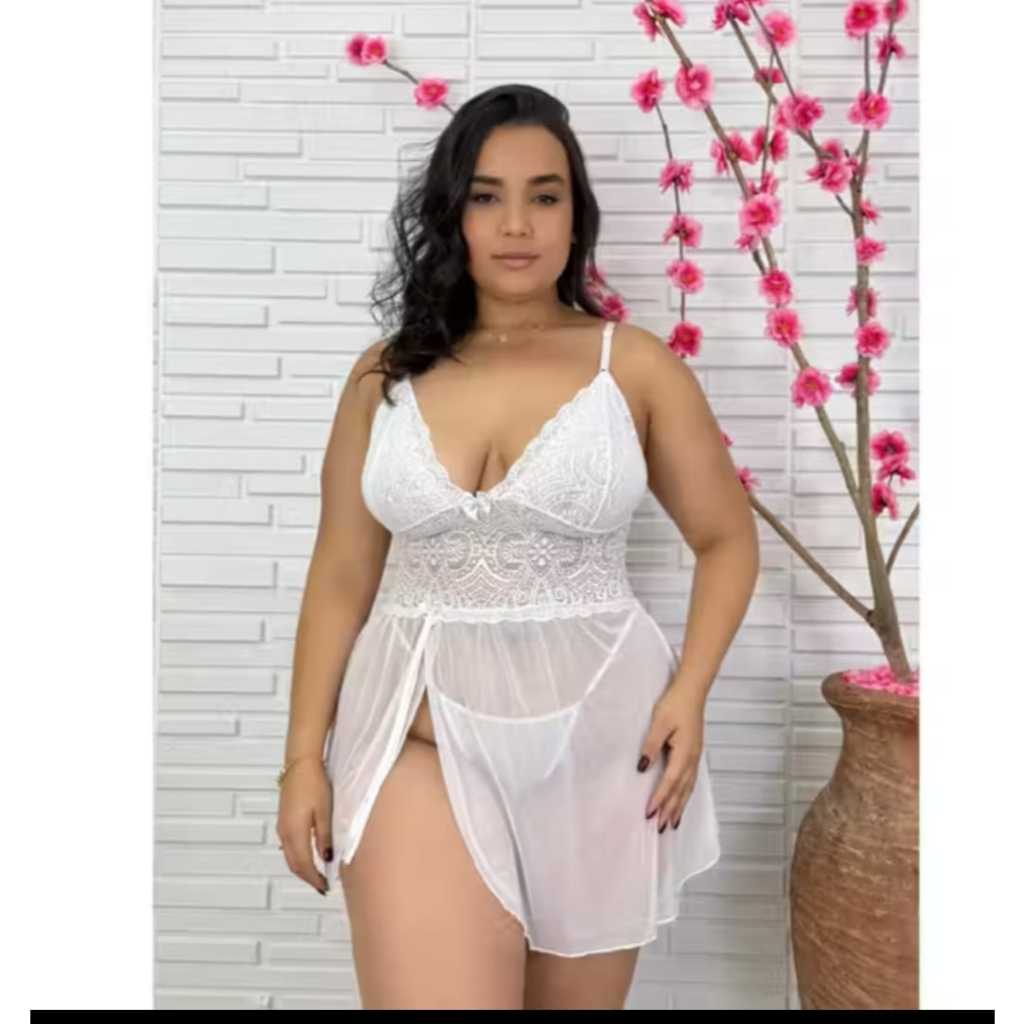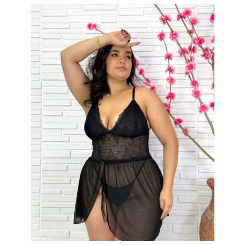 Camisola Plus Size Feminina Com Calcinha Fenda Lateral Dormir Noite Tule Renda Lingerie Conforto Fio Dental Verao