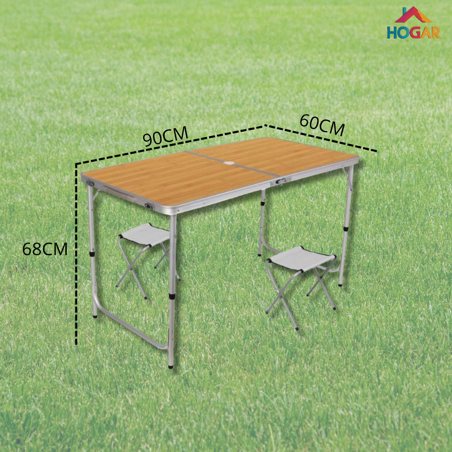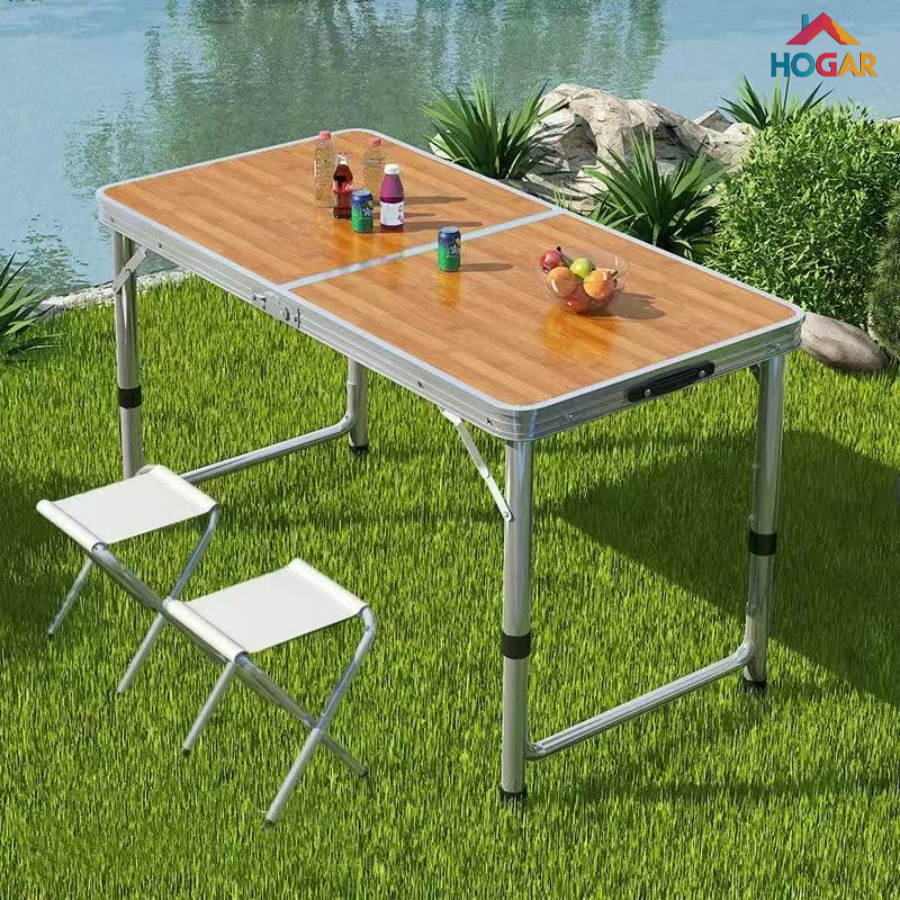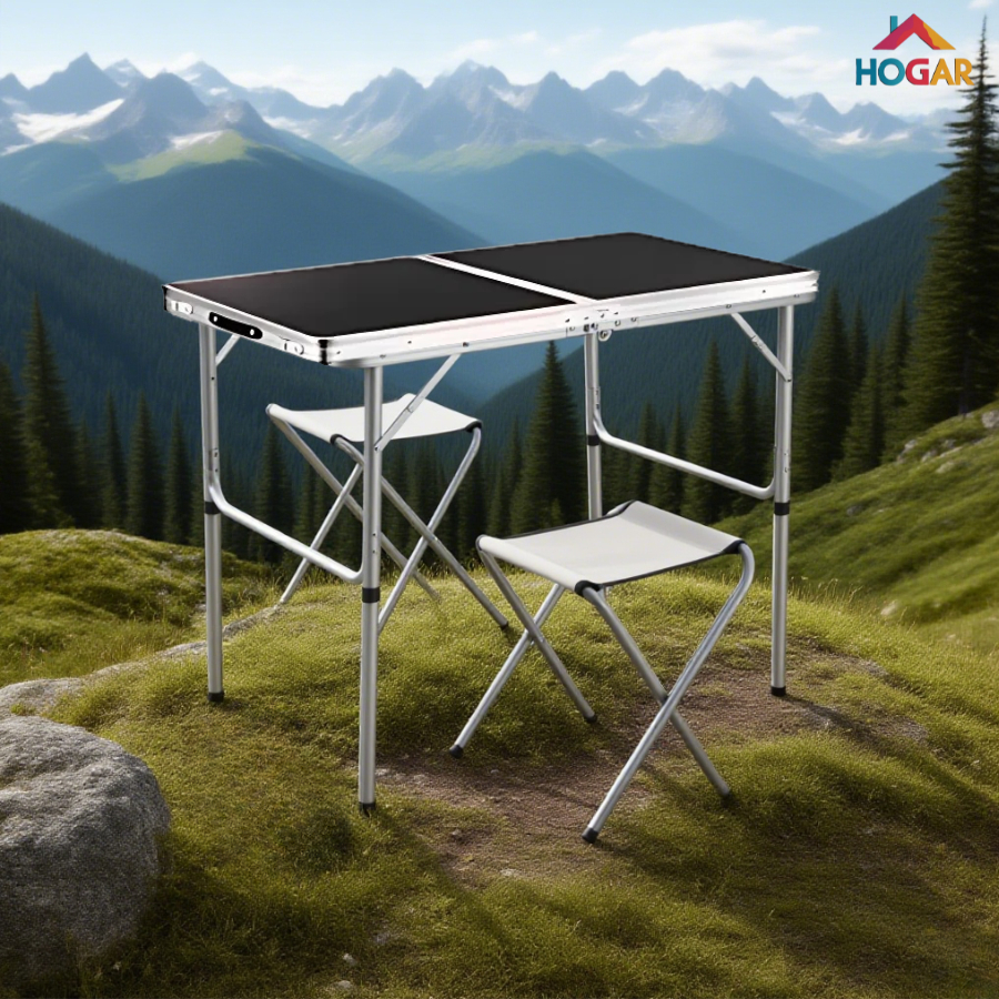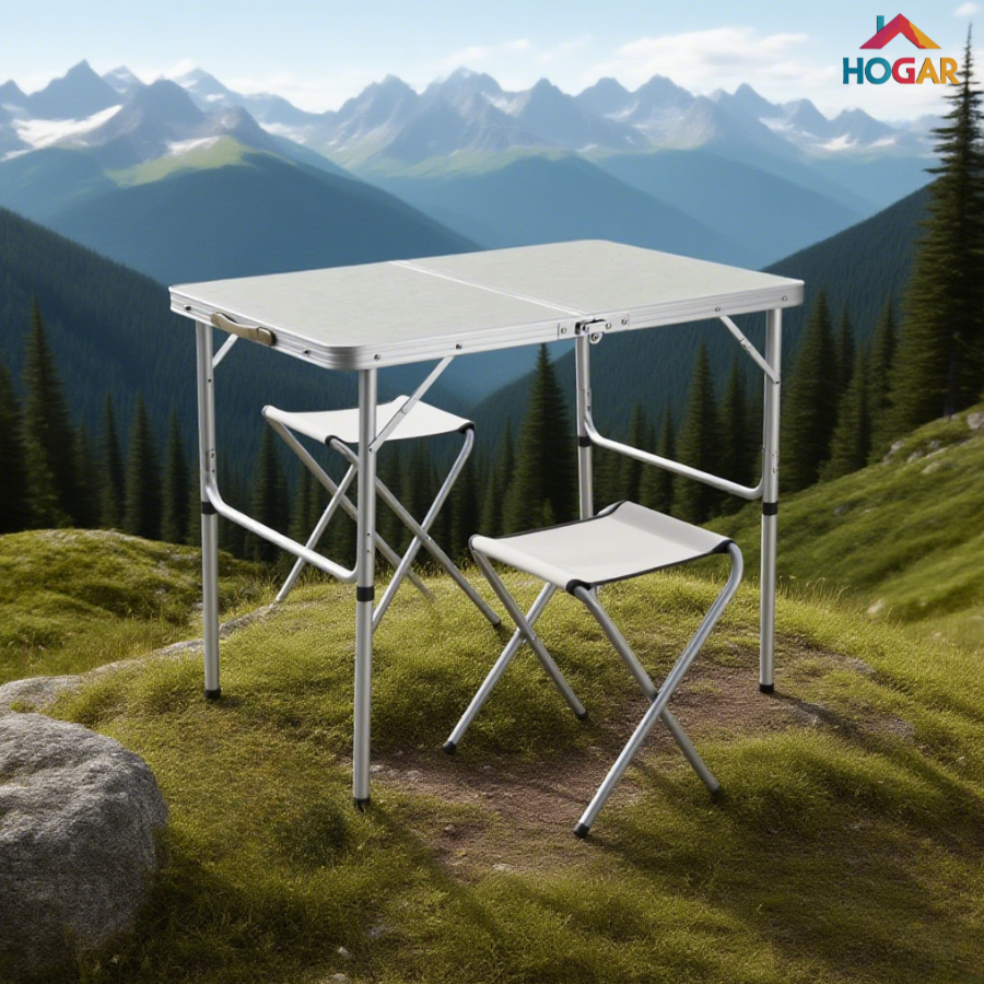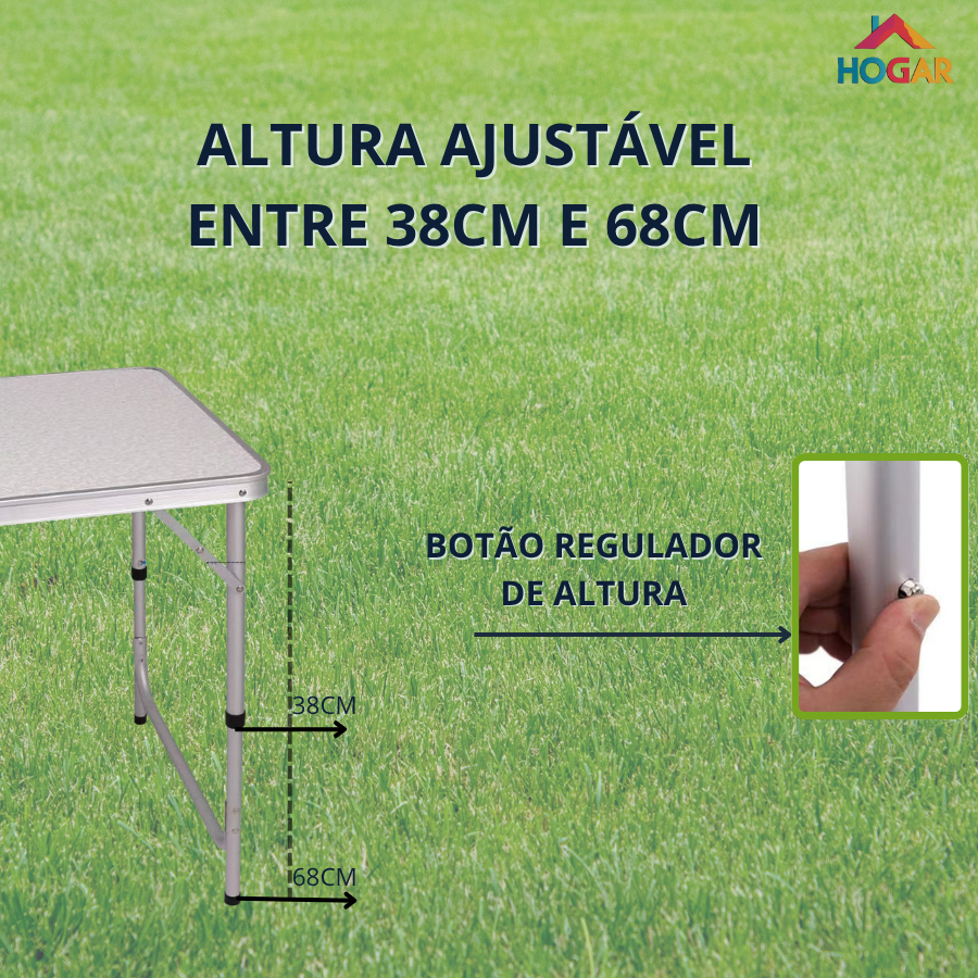 Mesa Maleta Portátil de Piquenique Mesa Auxiliar de Alumínio Dobrável com 2 Bancos
