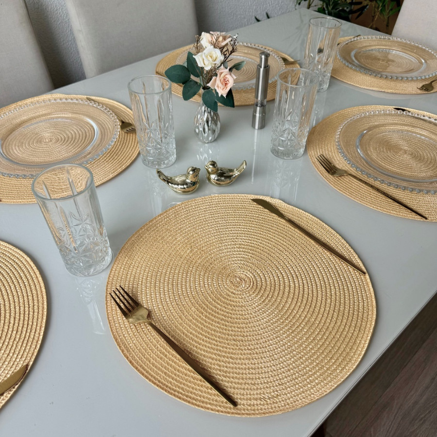 Kit 4/6 Peças Sousplat Redondo Mesa Posta Jantar Chique Jogo Americano Descanso Prato Casamento Festa