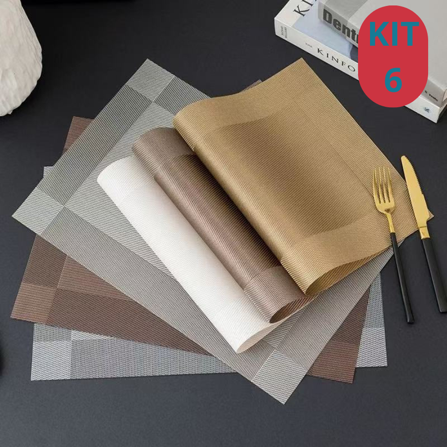 Jogo Americano 6pç ou 4pç Retangular Metalizado em PVC Mesa Posta Casamento Festa