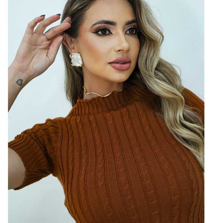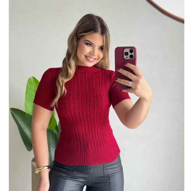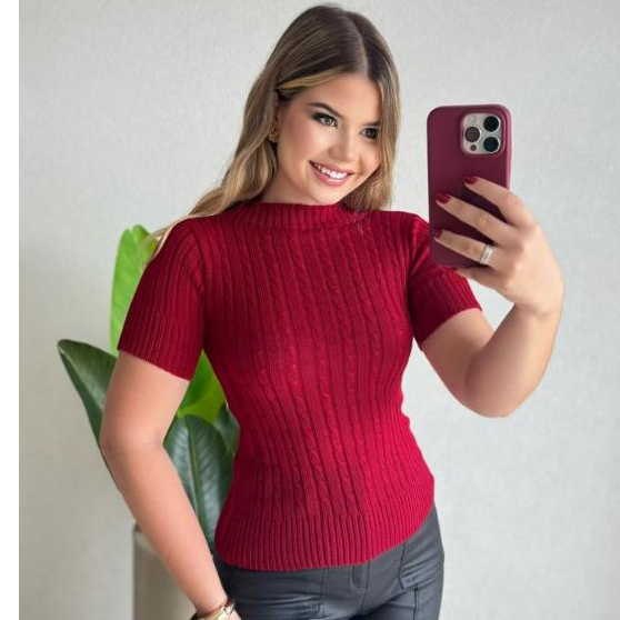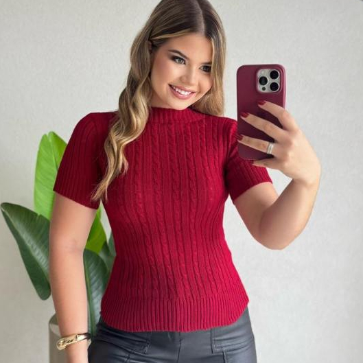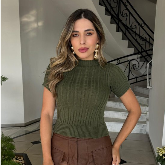 BLUSA TRANÇA TRICOT ELEGANTE PARA DIA DIA CONFORTAVEL FEMININA MODA VERAO