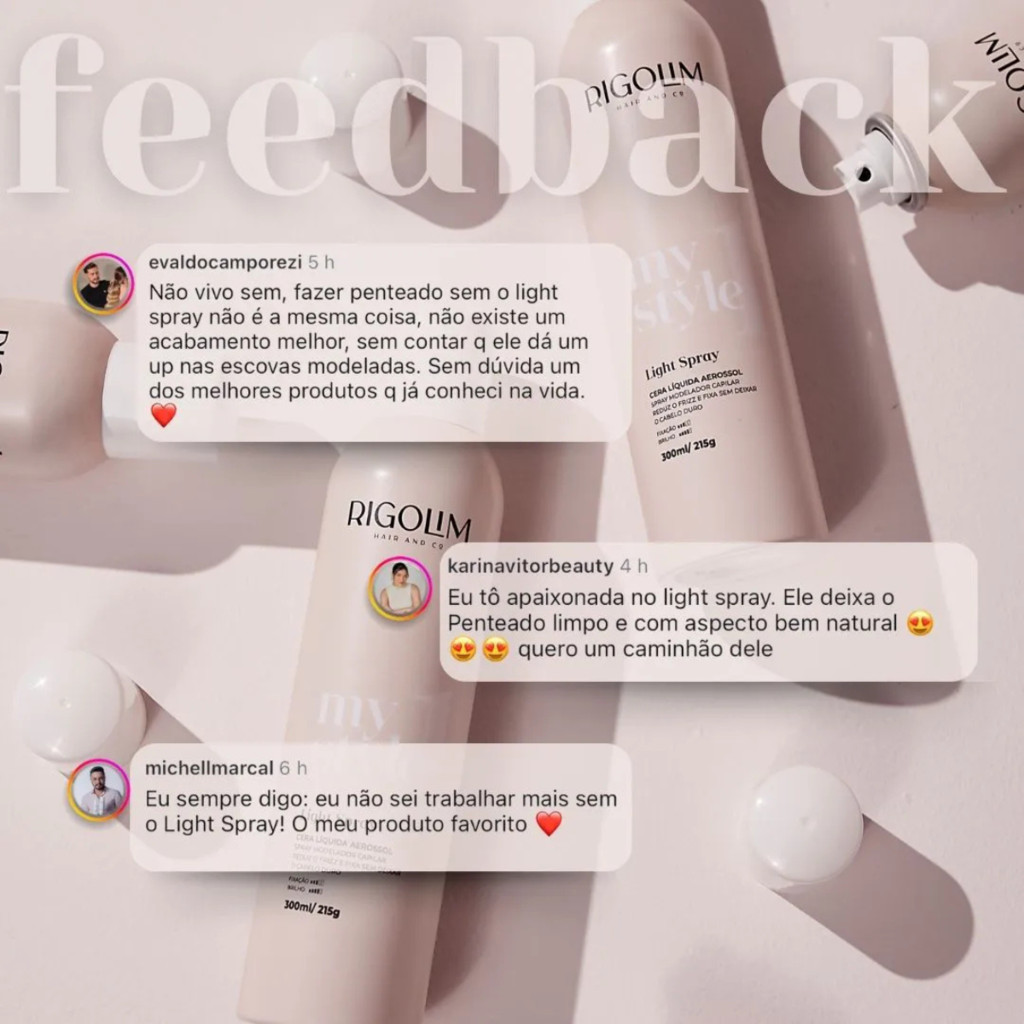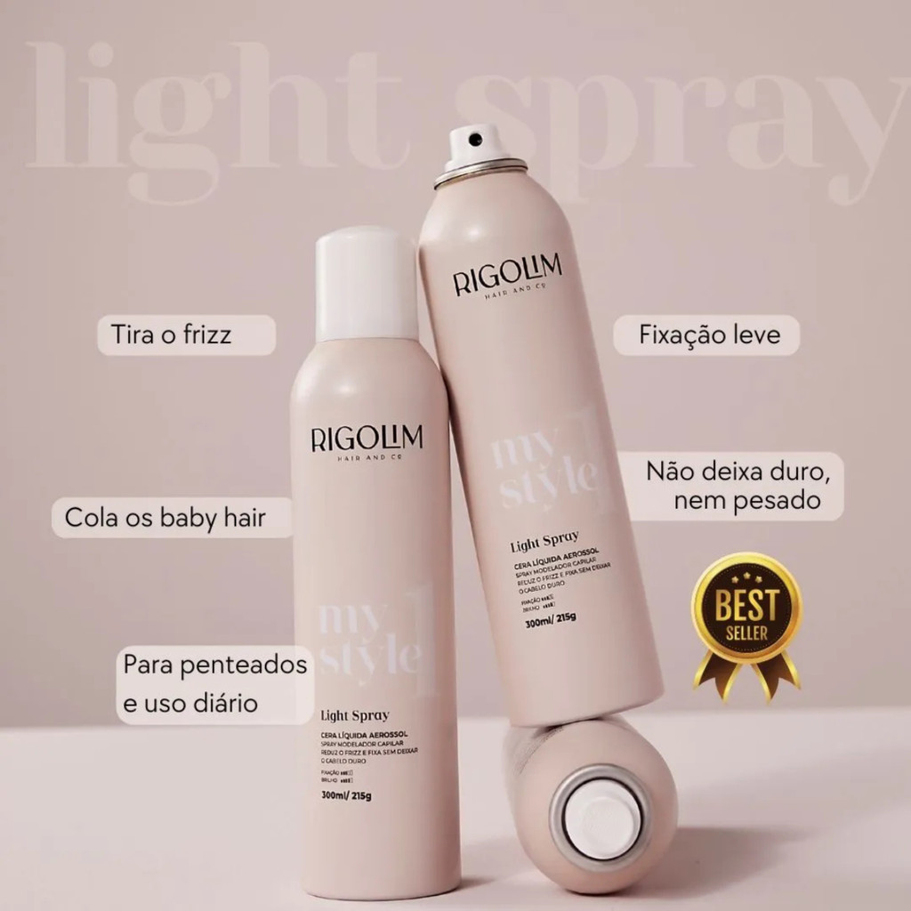 LIGHT SPRAY ANTIFRIZZ RIGOLIM HAIR AND CO PARA MODELAR E FINALIZAR SEUS PENTEADOS COM LEVE FIXAÇÃO