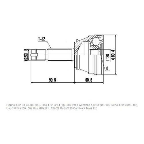 Junta Homocinética Fiat Uno Mille 1991/2010 22x20
