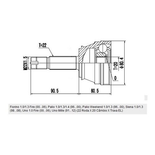 Junta Homocinética Fiat Uno Mille 1991/2008 22x20