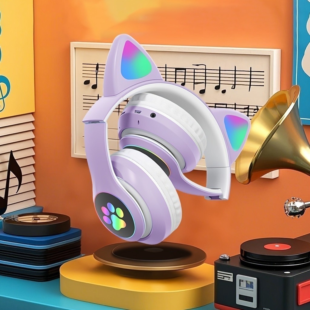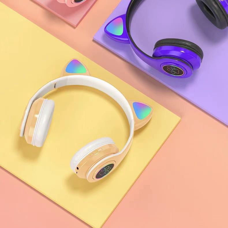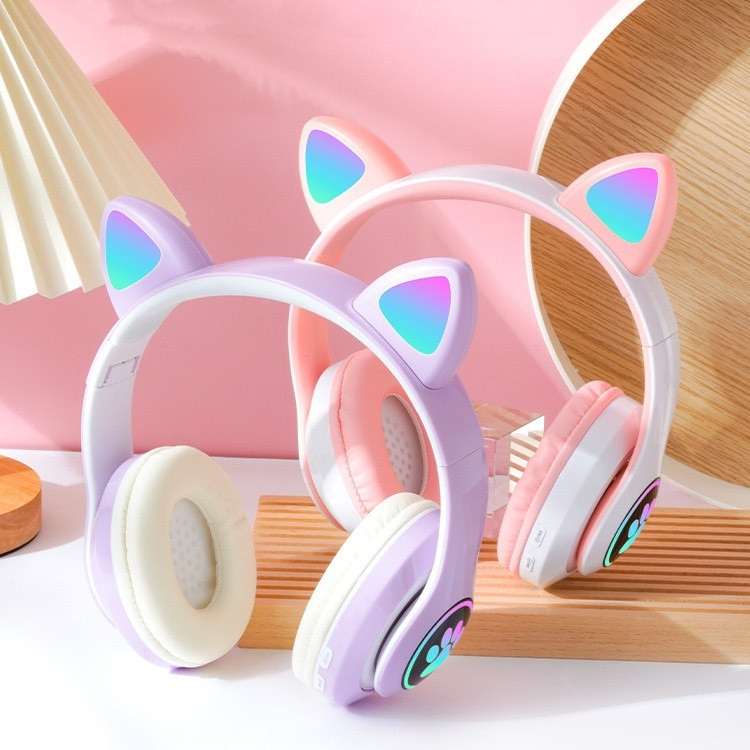 Fone De Ouvido Orelha De Gato Gatinho Cat Bluetooth Ear Com Led Rgb Headphone