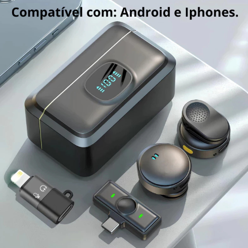 Microfone De Lapela Wireless Para Iphone E Android Sem Fio Anti Ruído