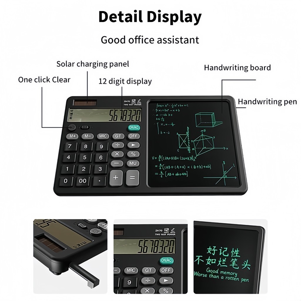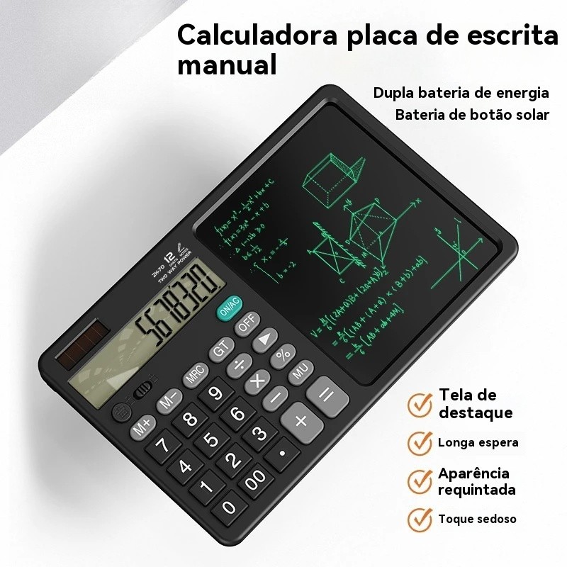Calculadora Solar 10 Dígitos c/ Bloqueio Digital | Bloco Desenho Integrado + Display Grande - Escritório/Escola